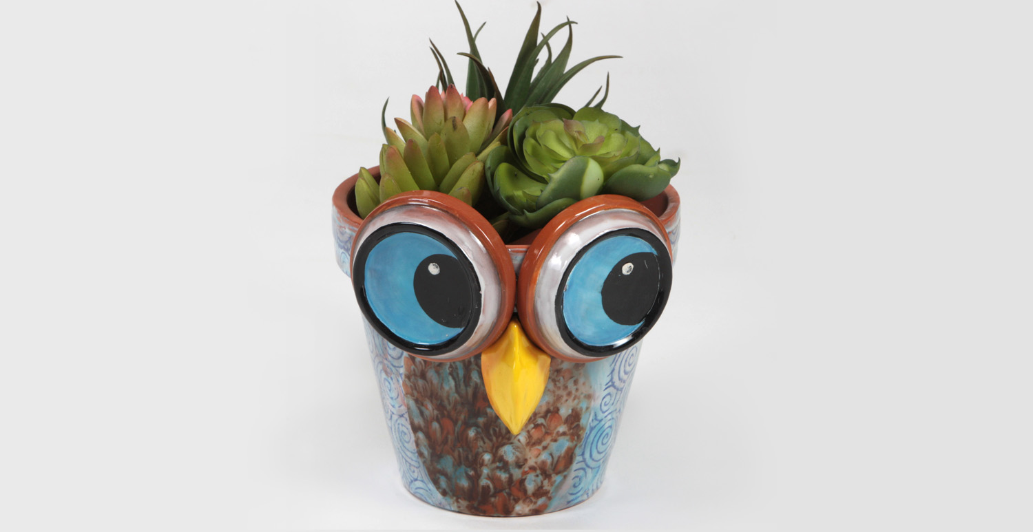 7. Apply 2 coats of the following colors to the owl: SC-9 Jaded, SC-10 Teal Next Time, SC-42 Butter Me Up, SC-94 Curry Around* (discontinued).