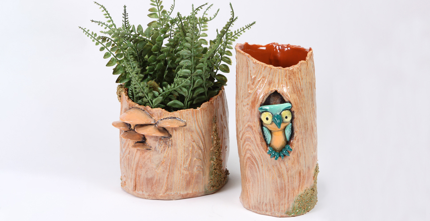 5. Antique both the mushrooms and the owl with UG-50 Jet Black. To antique, apply 1 coat and allow to dry. Use a moist sponge to wipe glaze away, leaving some behind to emphasize texture.