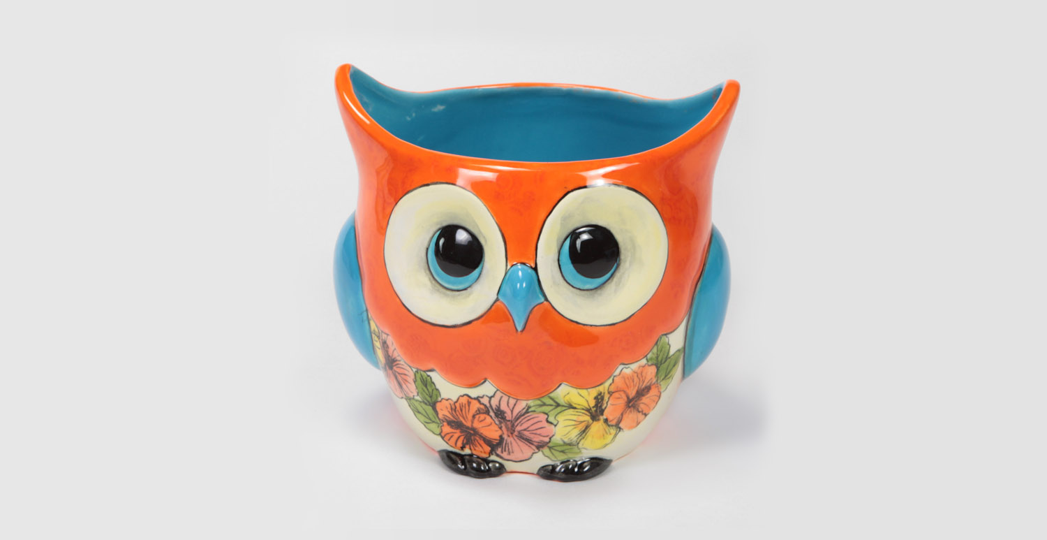 4. Brush three coats of SC-75 Orange A Peel to the top and back section of the owl, use CB-106 Script Liner, and CB-604 Soft Fan.