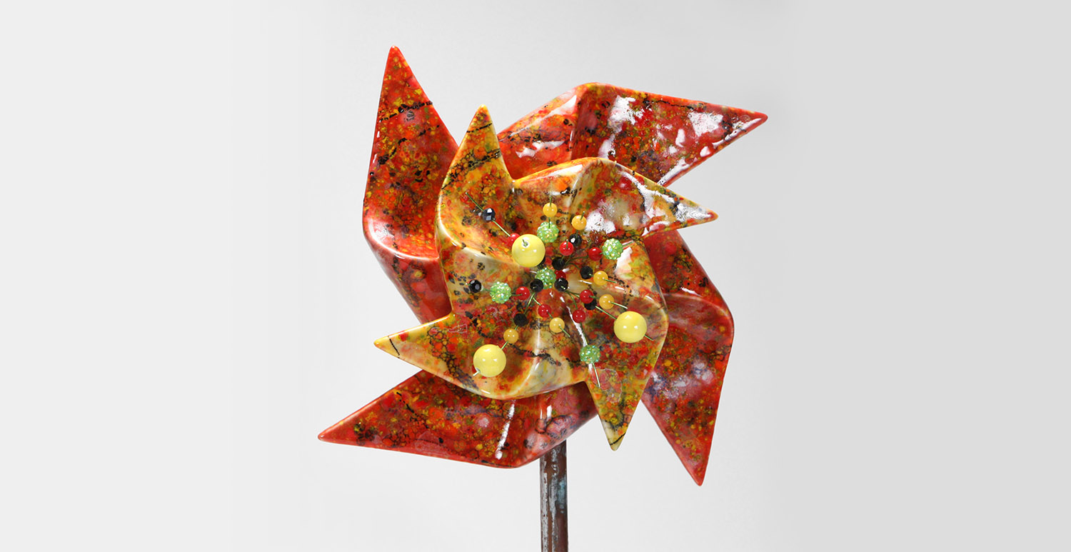 7. Thicken S-2101 Clear with AC-310 Silkscreen Medium using a palette knife, add food coloring to deepen the color, screen the flowers in the shape of a lei on the chest of the owl. Flowers are from DSS-147 Island. To screen, place the shiny side down, rub with your finger the thickened clear, this is for color placement.