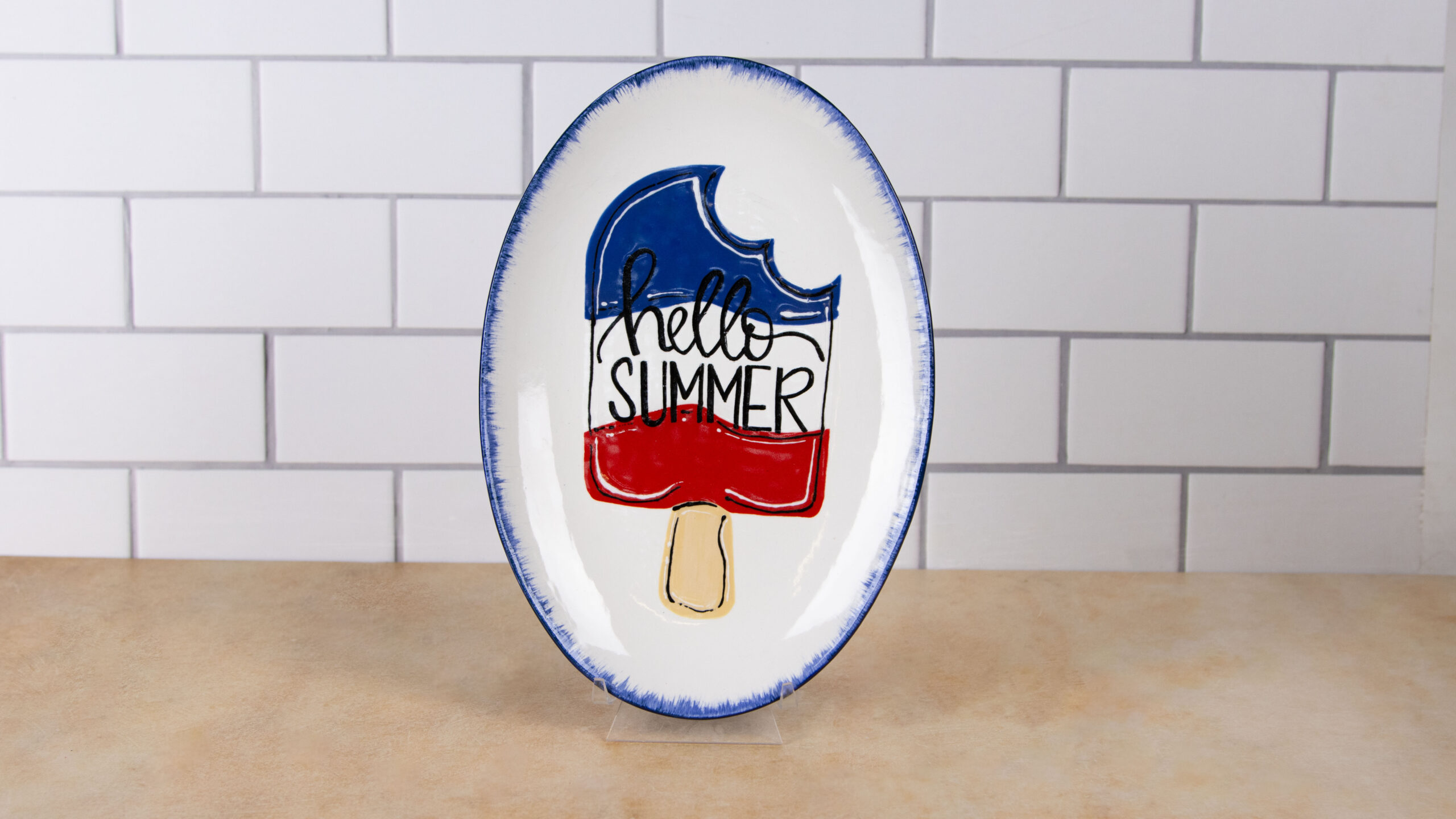 - Using a CB106#6 Script Liner, apply 3 coats of SC076 Cari-bein Blue to the top section of the popsicle.