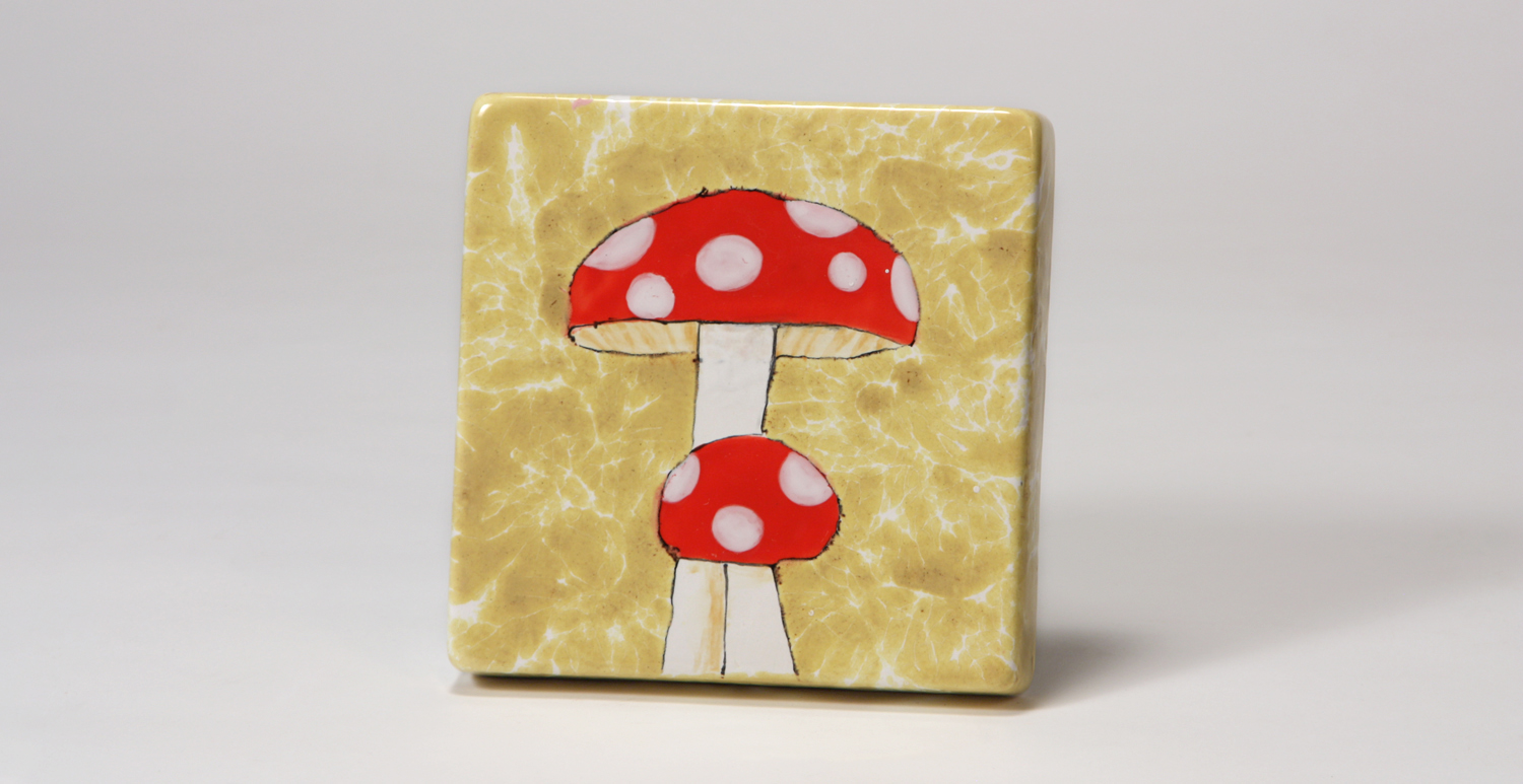 Using a CB-604 #4 Soft Fan, apply 2 coats of FN-008 Brown to the front & sides of the tile. Allow it to dry.