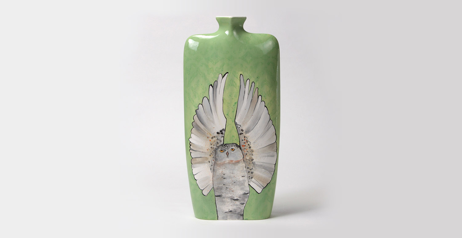 3. Trace around the owl pattern on the vase, brush the area past the pencil lines with two coats of FN-001 White.