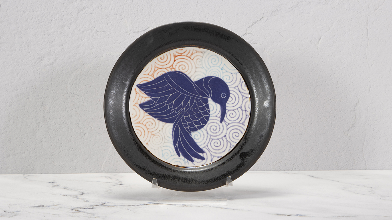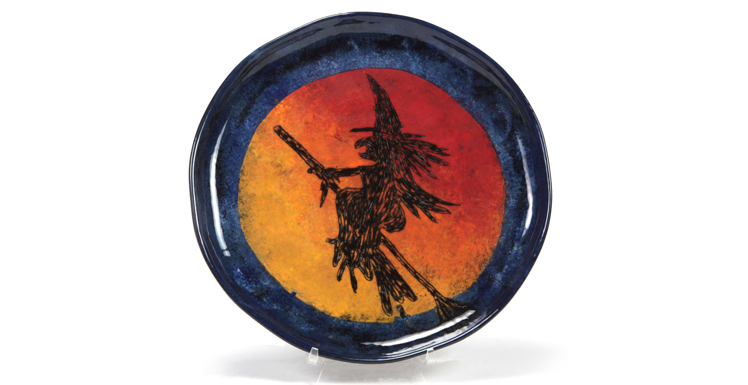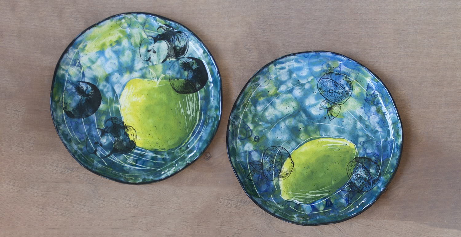 When engobe is dry, using a #4 soft fan brush (RB144) apply 3 coats of SW165 Lavender Mist to the outside of the mug, overlapping the engobe by about 2” including the handle.
