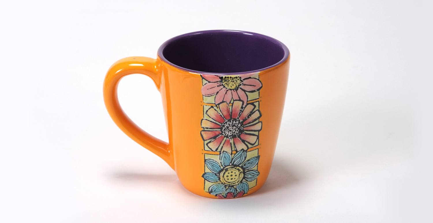 Using the Script Liner with SC-9 Jaded, SC-10 Teal Next Time, SC-45 My Blue Heaven and SC-77 Glo-Worm, apply 2 coats to the corresponding sections of the pattern. Allow glaze to dry between coats.