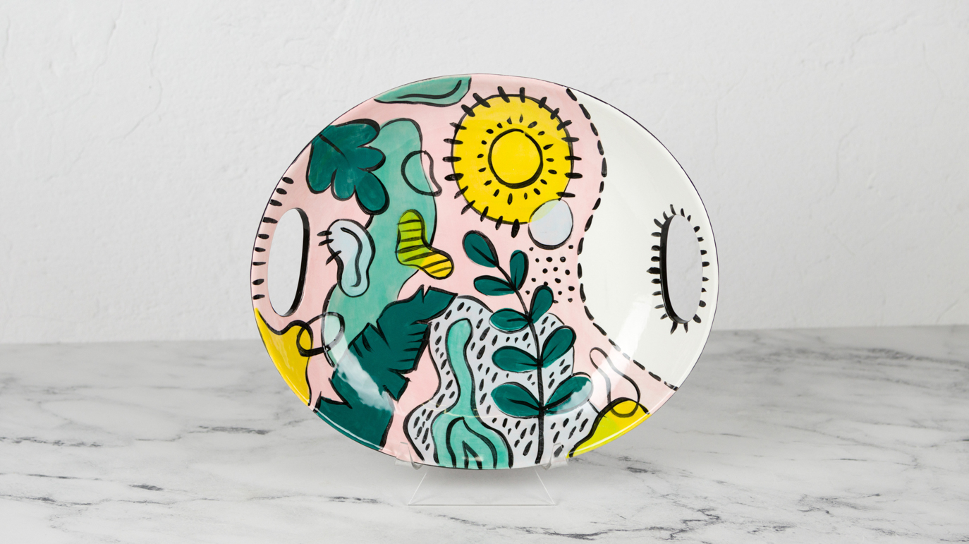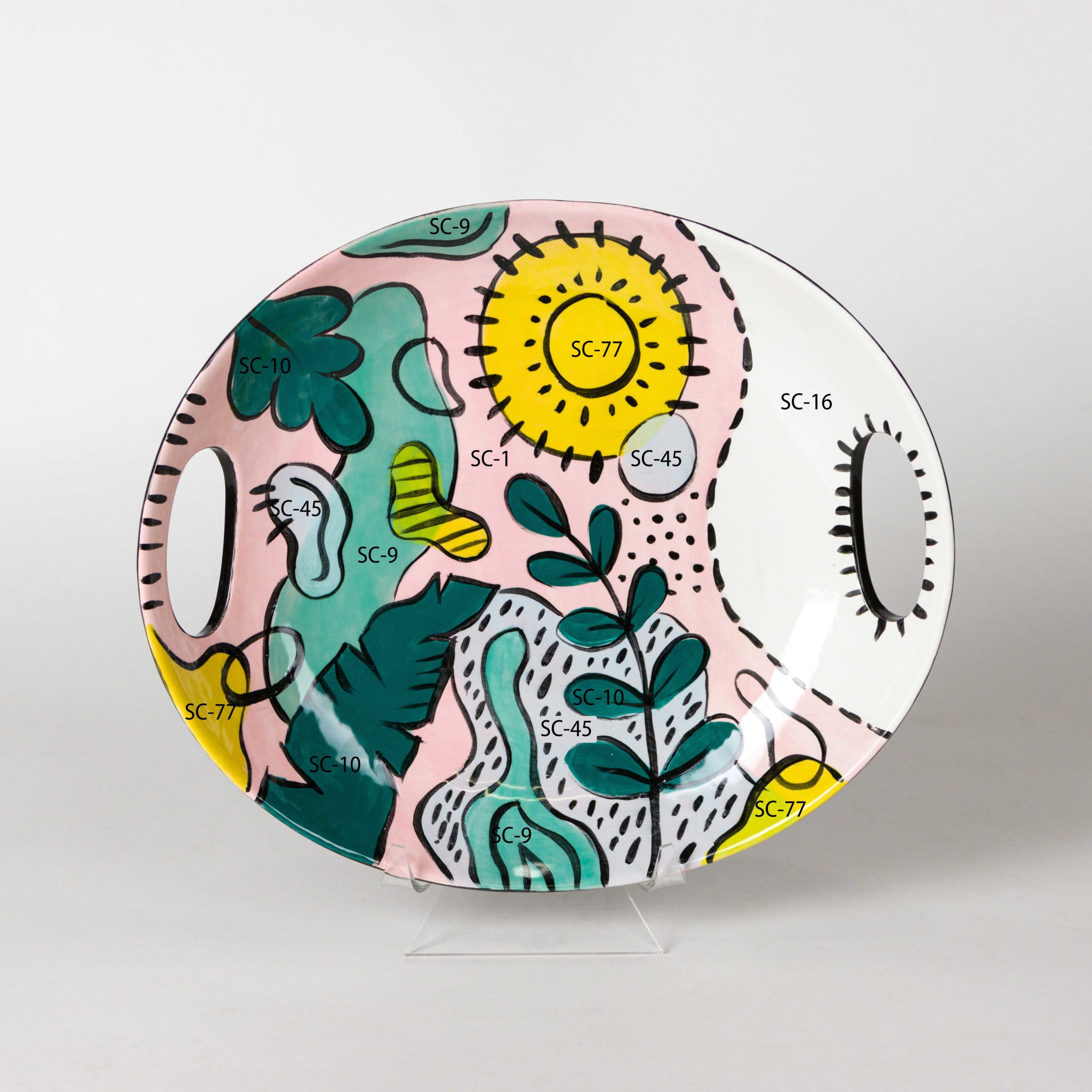 Using the Soft Fan with SC-15 Tuxedo, apply 2 coats to the back of the platter. Allow glaze to dry between coats.