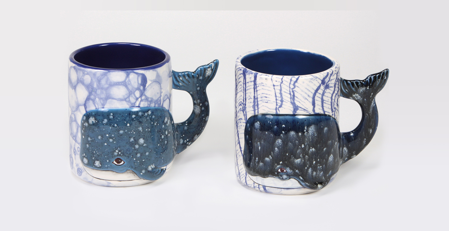 2. Using a CB-604 #4 Soft Fan, apply 3 coats of FN-007 Green to the ouside of the mug, avoiding the handle.