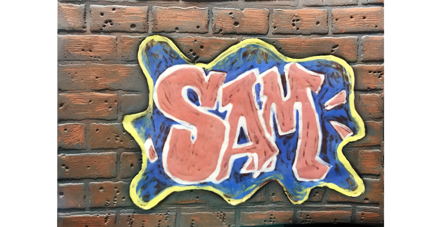 Pencil in the letters and the hands of the clock. Brush the letter with SG-401 Designer Liner Black and one coat or SC-15 Tuxedo, use CB-110 #10/0 Mini Liner.