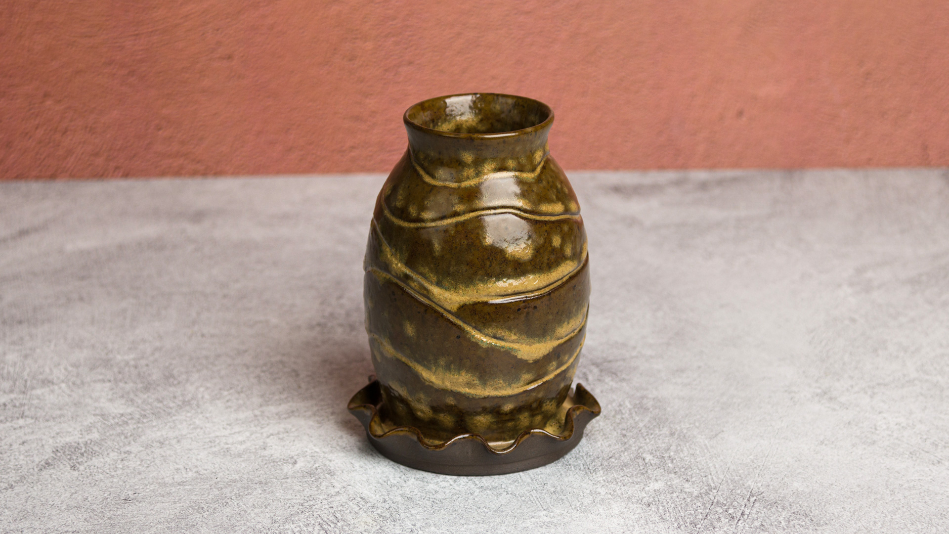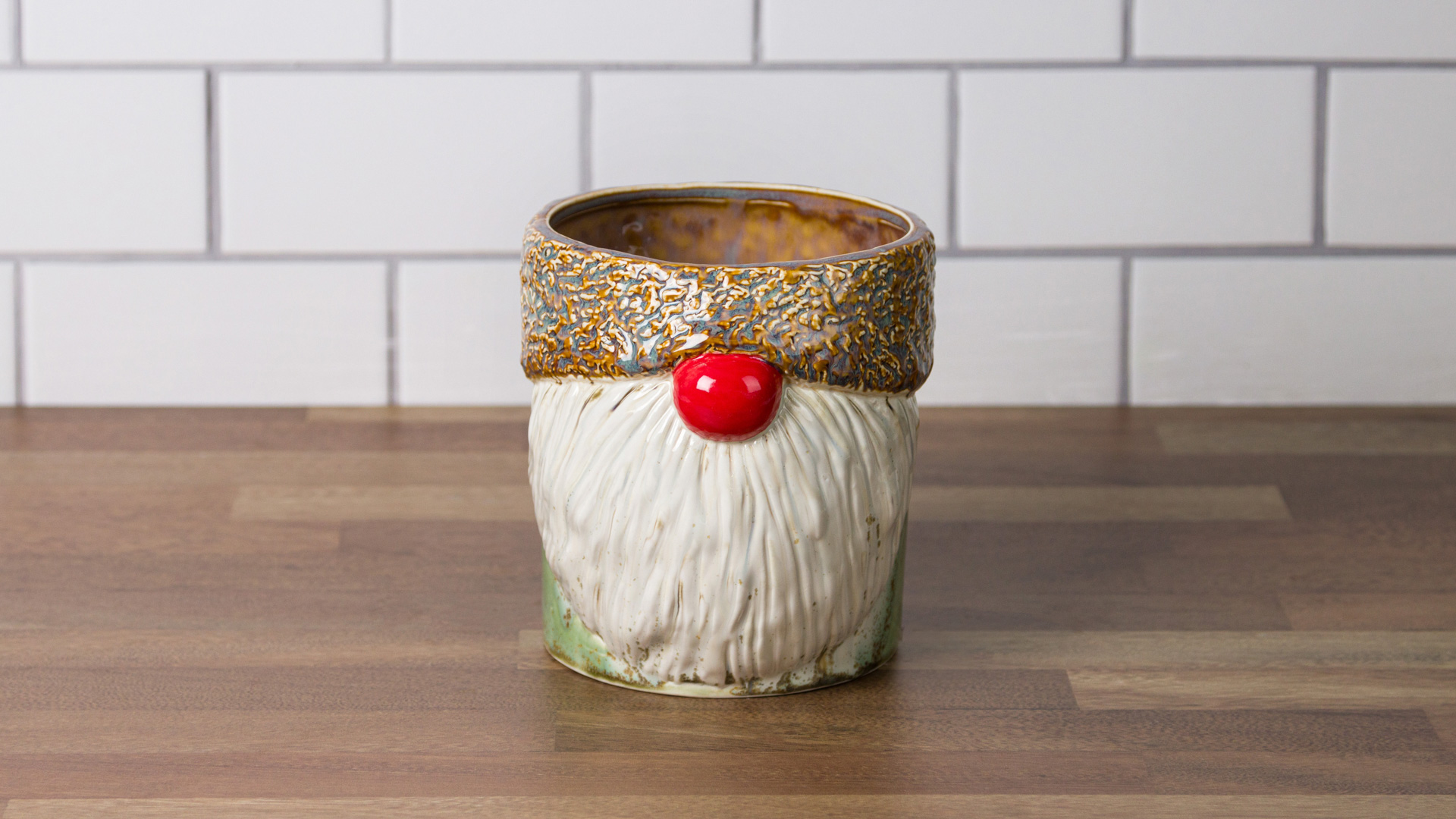 2. Using a #8 soft fan brush (RB140) apply 3 coats of SW219 Opal Lustre, to the hat of Gnome and inside of planter.