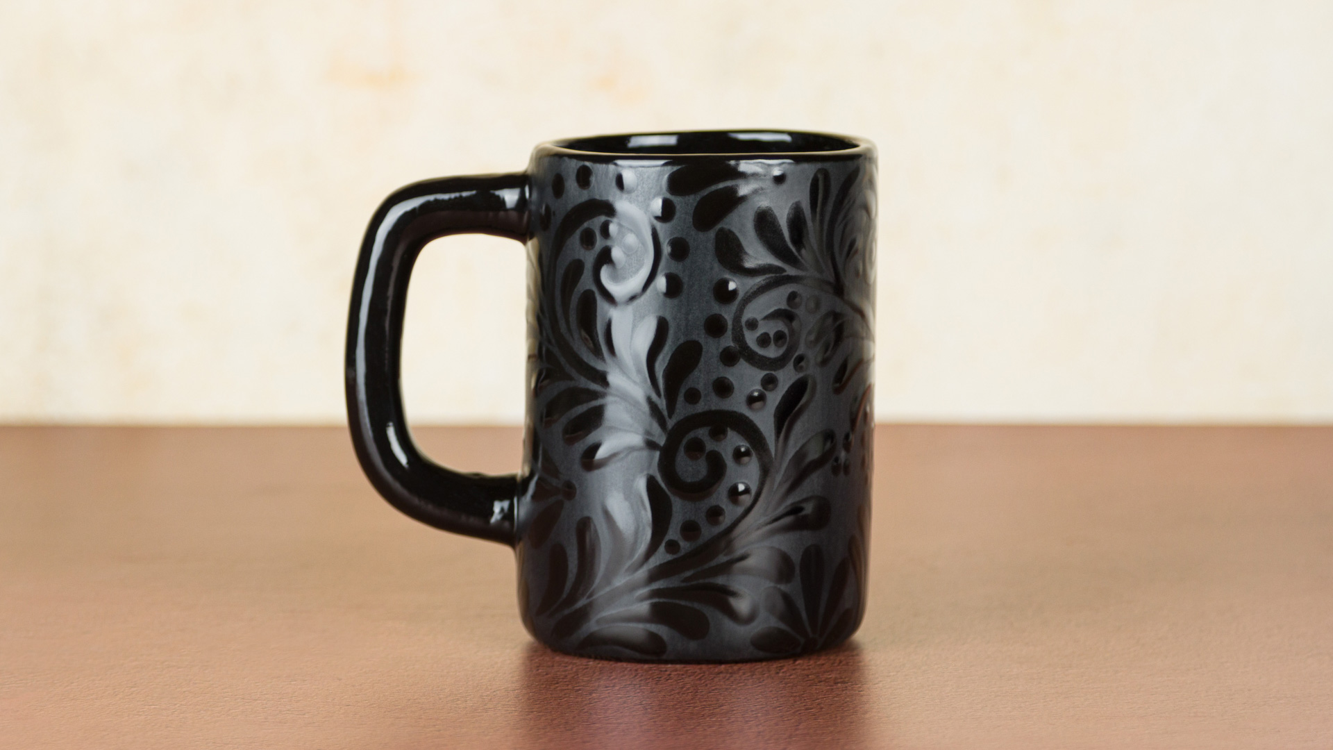 - Apply four even coats of Black Velvet on the outside of the mug, let dry between each coat.