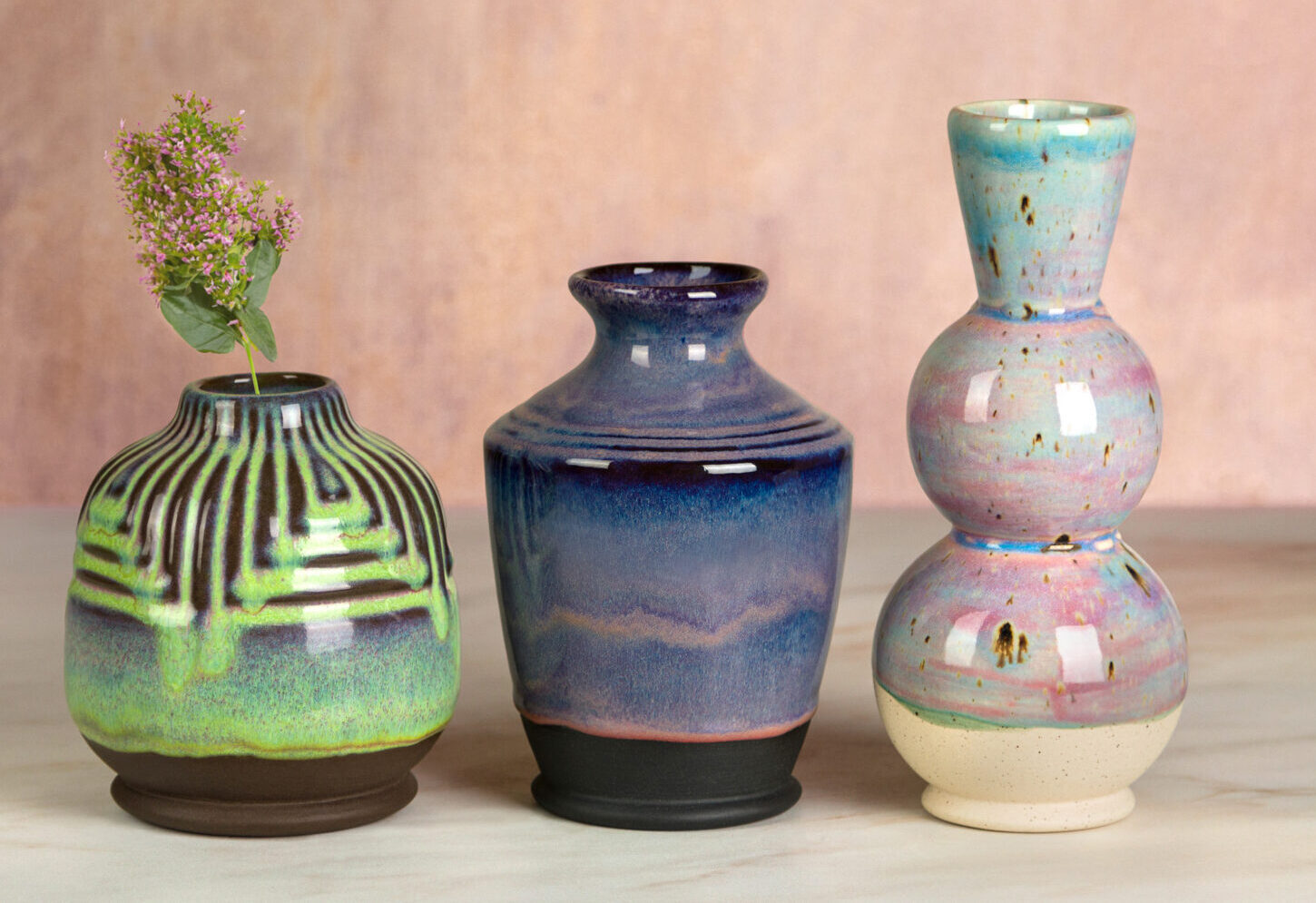 When engobe is dry, using a #4 soft fan brush (RB144) apply 3 coats of SW219 Opal Lustre to top ½ of the planter, overlapping the Black Engobe.