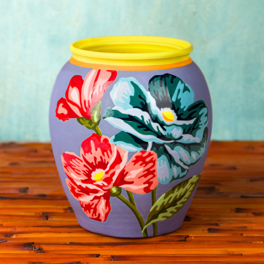 - Apply 2-3 coats of SW004 Zinc Free Clear over the flowers and the inside the pot, leaving the background unglazed.