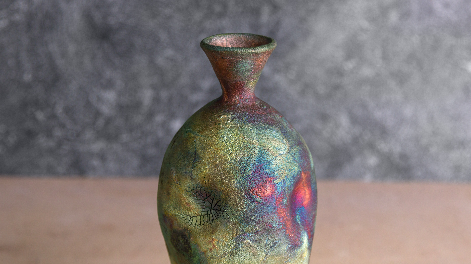At 1850°F carefully remove piece from kiln with metal tongs, and place into trash can with combustibles. Quickly place lid over can, causing reduction to occur.