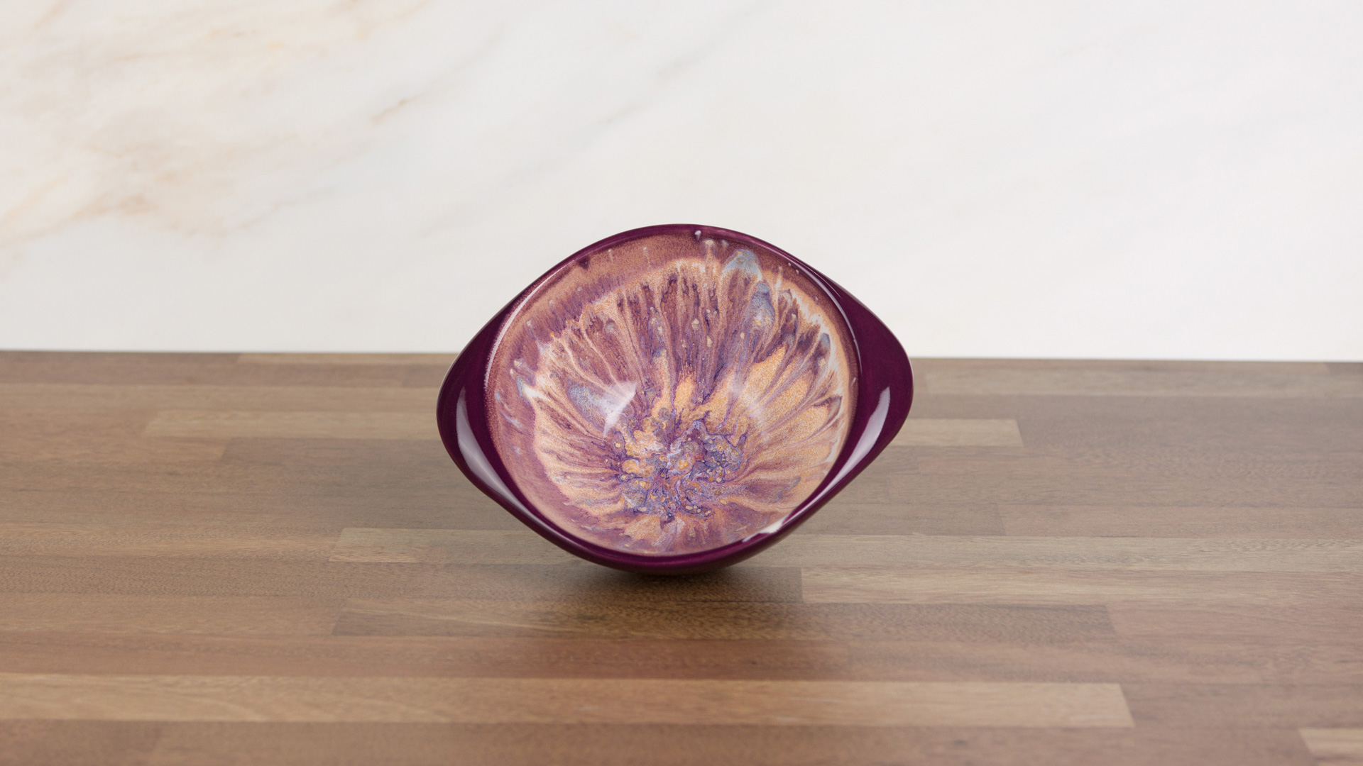 5. Once the Sand Dollar is dry, apply 3 coats of Peppered Plum using a CB-140 #4 Fan Brush in circles inside the bowl about 1″-1.5″ apart. Leave room between the circles. Allow glaze to dry between coats.