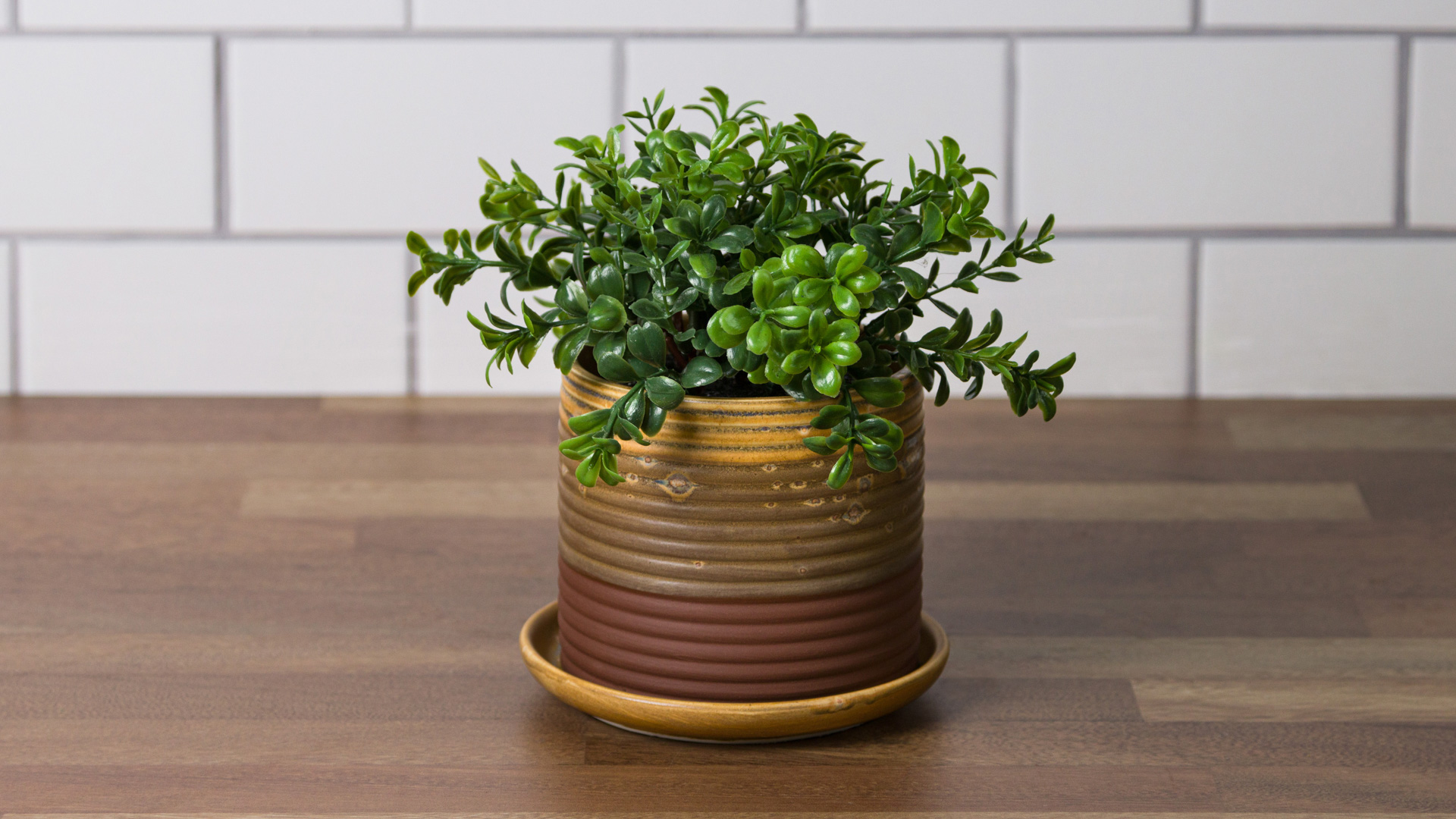 Using a Soft Fan brush, apply 3 coats of SW-174 Leather to the bottom 1/2 of the outside of the bowl. Do not apply to the foot of the piece. Allow glaze to dry between coats.