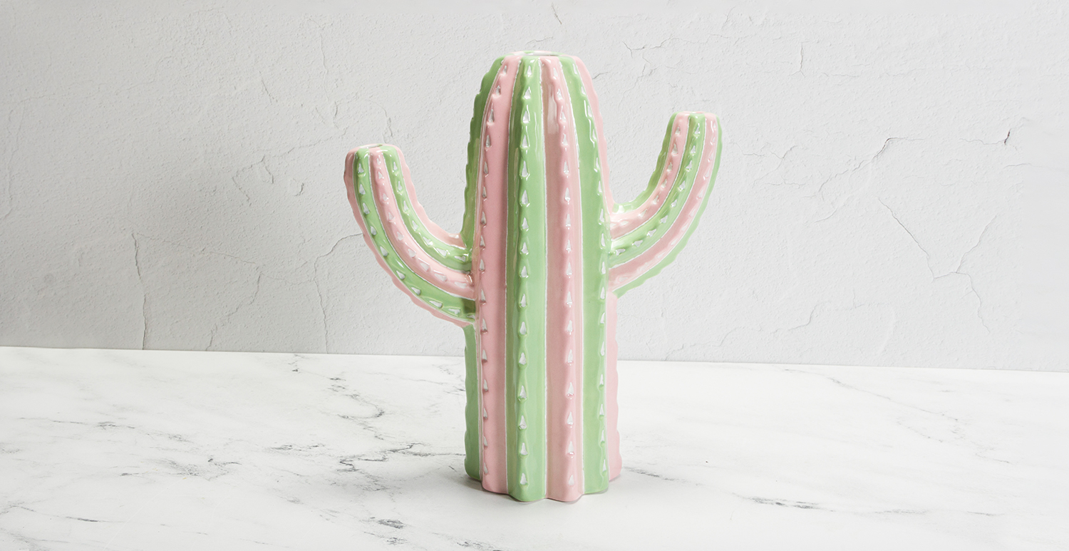 - Using the Script Liner with SC-1 Pink-A-Boo, apply 3 coats to every-other section on the cactus. Allow glaze to dry between coats.