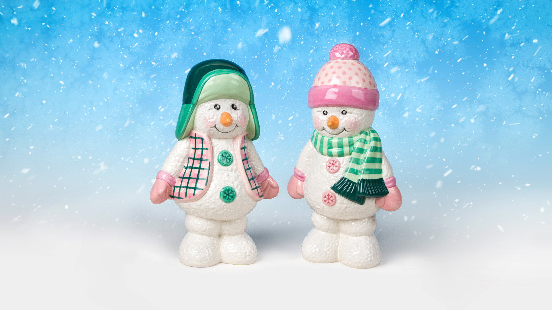 16. Squeeze out around 1 tsp of SC-1 Pink-A-Boo onto the palette. Dip the sponge in the glaze and lightly sponge the cheeks of the snowman.