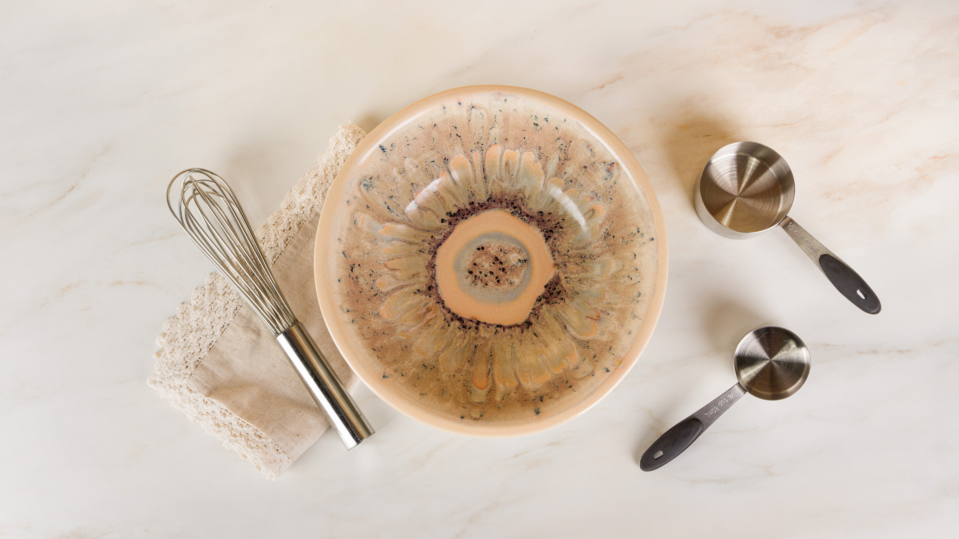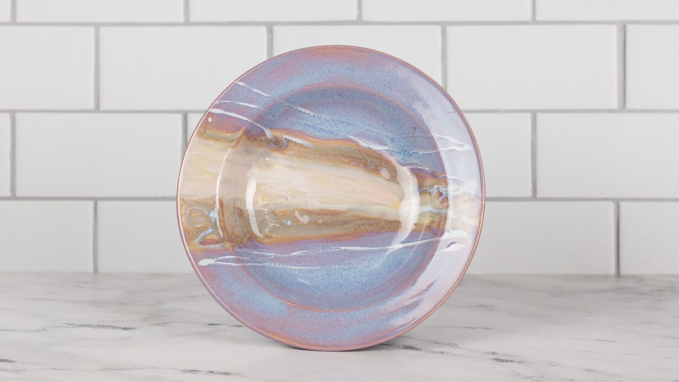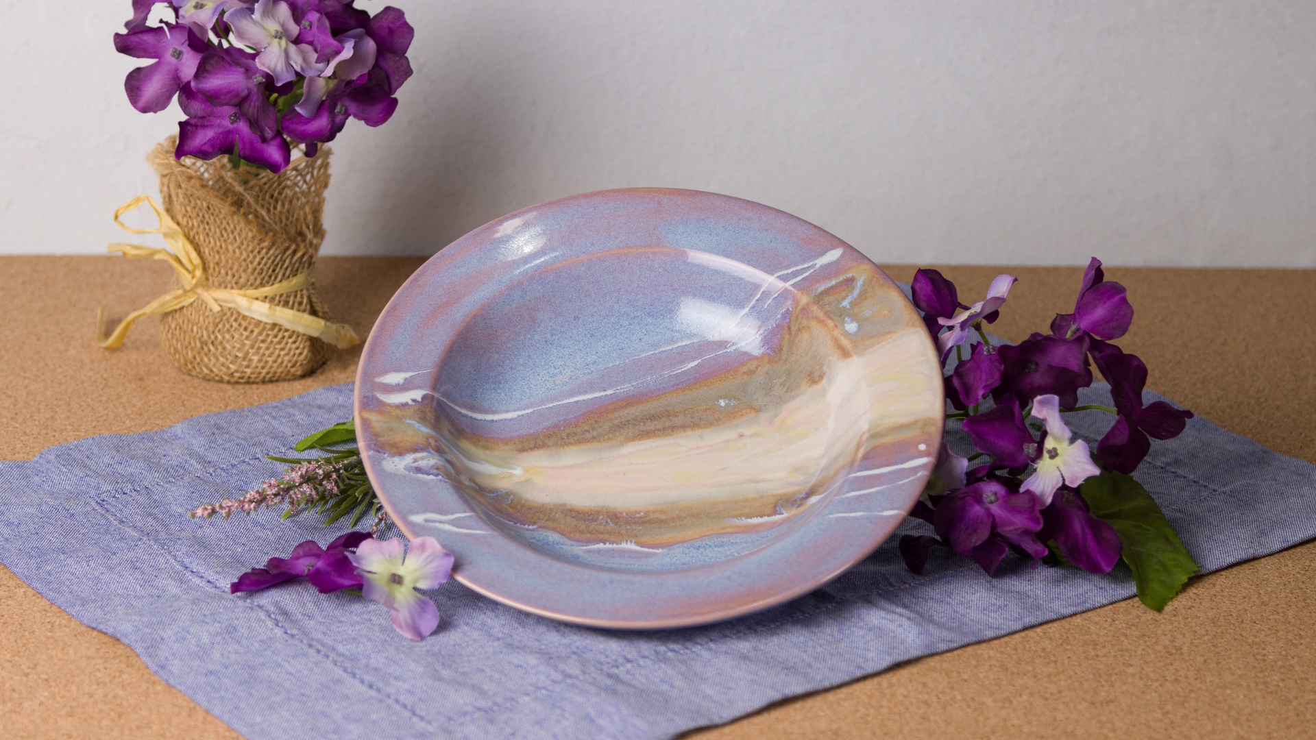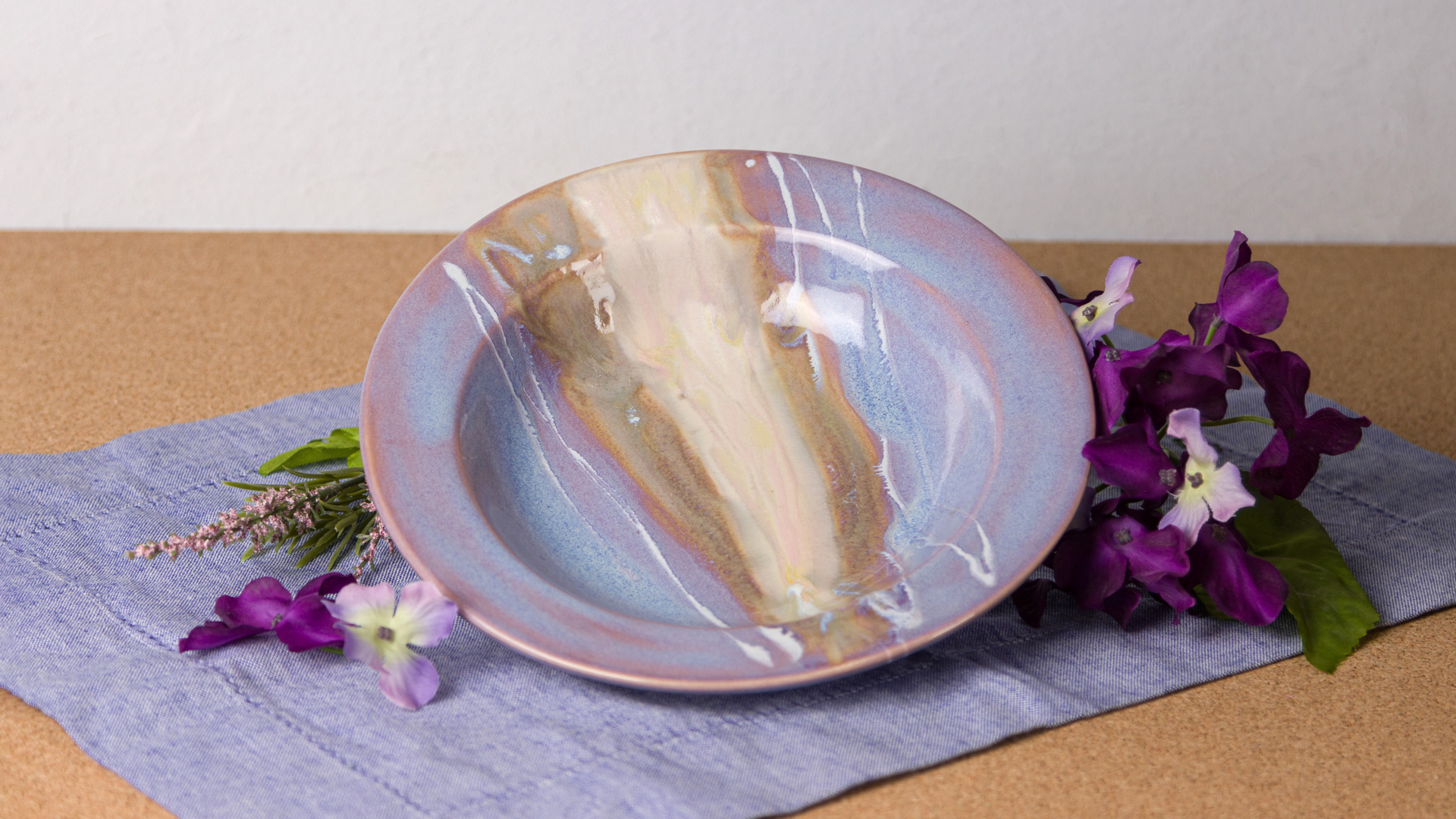 Using the Soft Fan with SW-165 Lavender Mist, apply 3 coats to the back of the bowl. Allow glaze to dry between coats. Flip the bowl back over to the front.