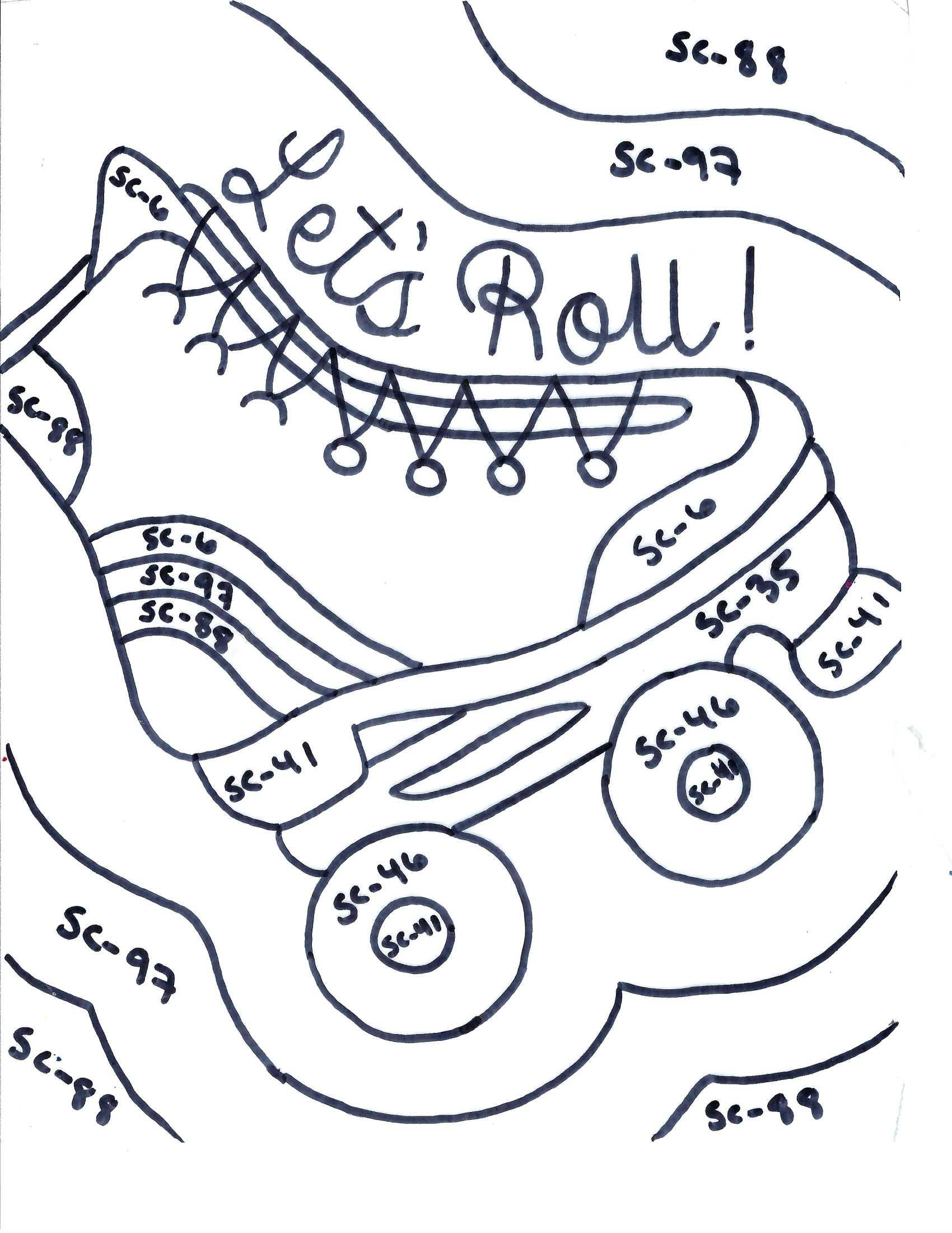 Using the Detail Liner with SC-15 Tuxedo, outline the design and lettering. Add “stitches” to the roller skate and background sections. Use the Soft Fan to apply 2 coats to the edge of the canvas. Allow glaze to dry between coats.