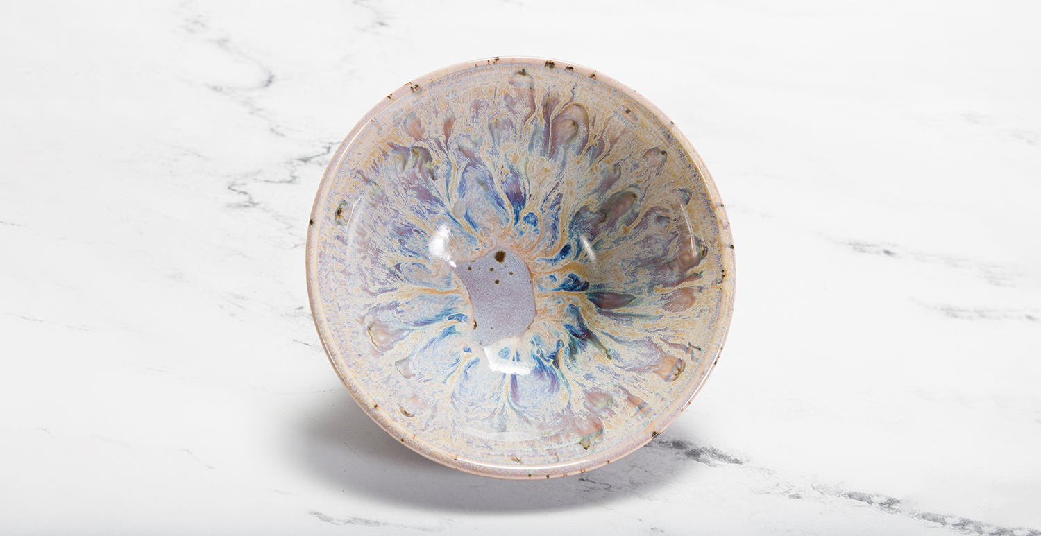 Using a fan brush, apply 2 heavy coats of SW-165 Lavender Mist to the entire piece, avoiding the foot. Allow the glaze to dry in between coats.