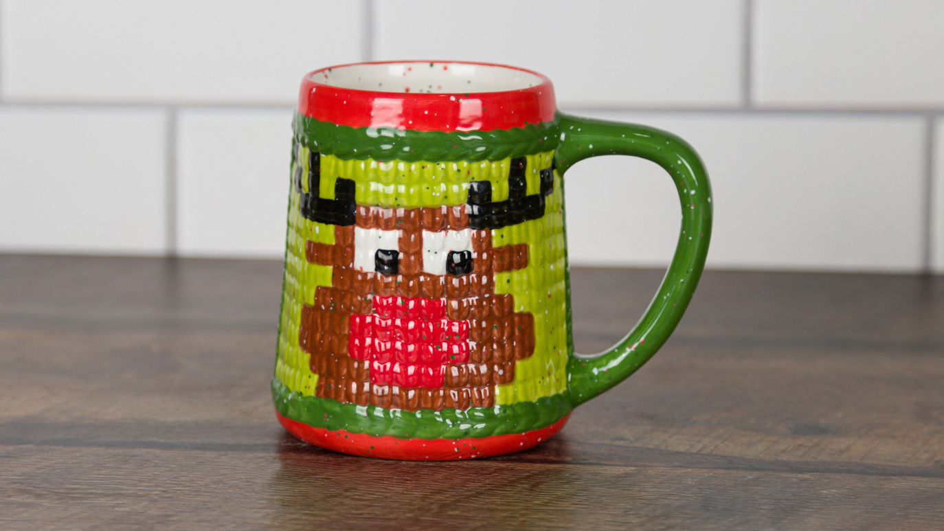 - Use the pencil to outline the pattern onto the inner “stitched” portion of the mug. Refer to the patterns below. The reindeer will be on one side of the mug and Santa will be on the other side.