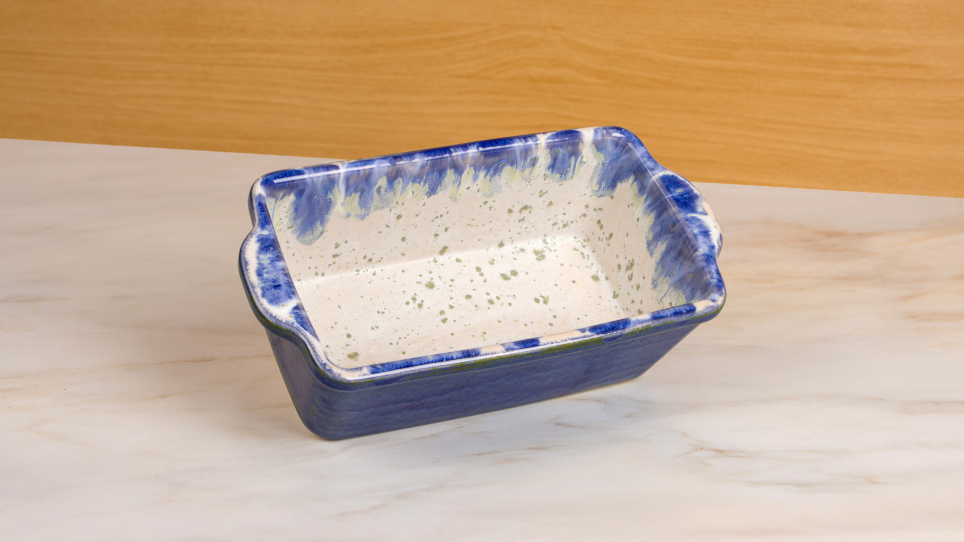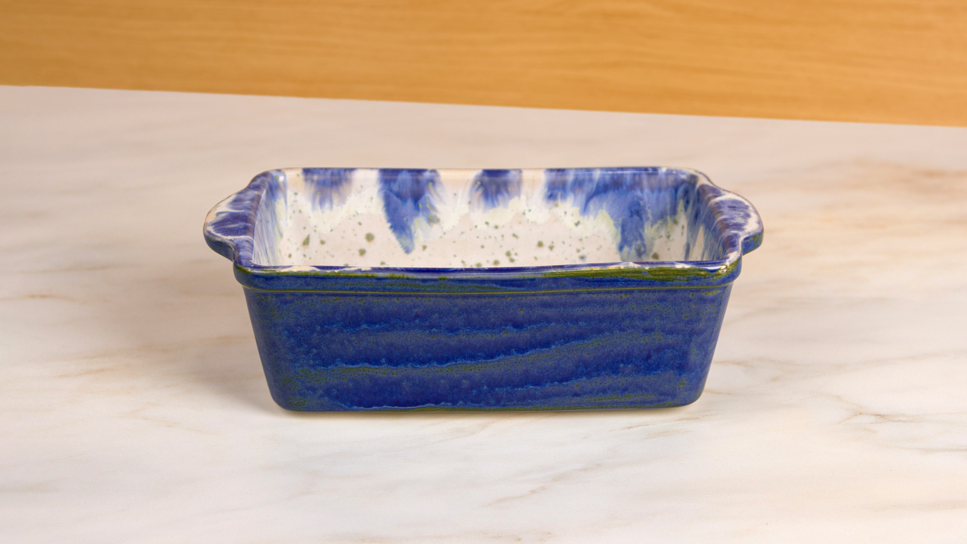 Using #8 fan brush (RB-140) apply 3 coats SW-100 Blue Surf all over outside of dish.