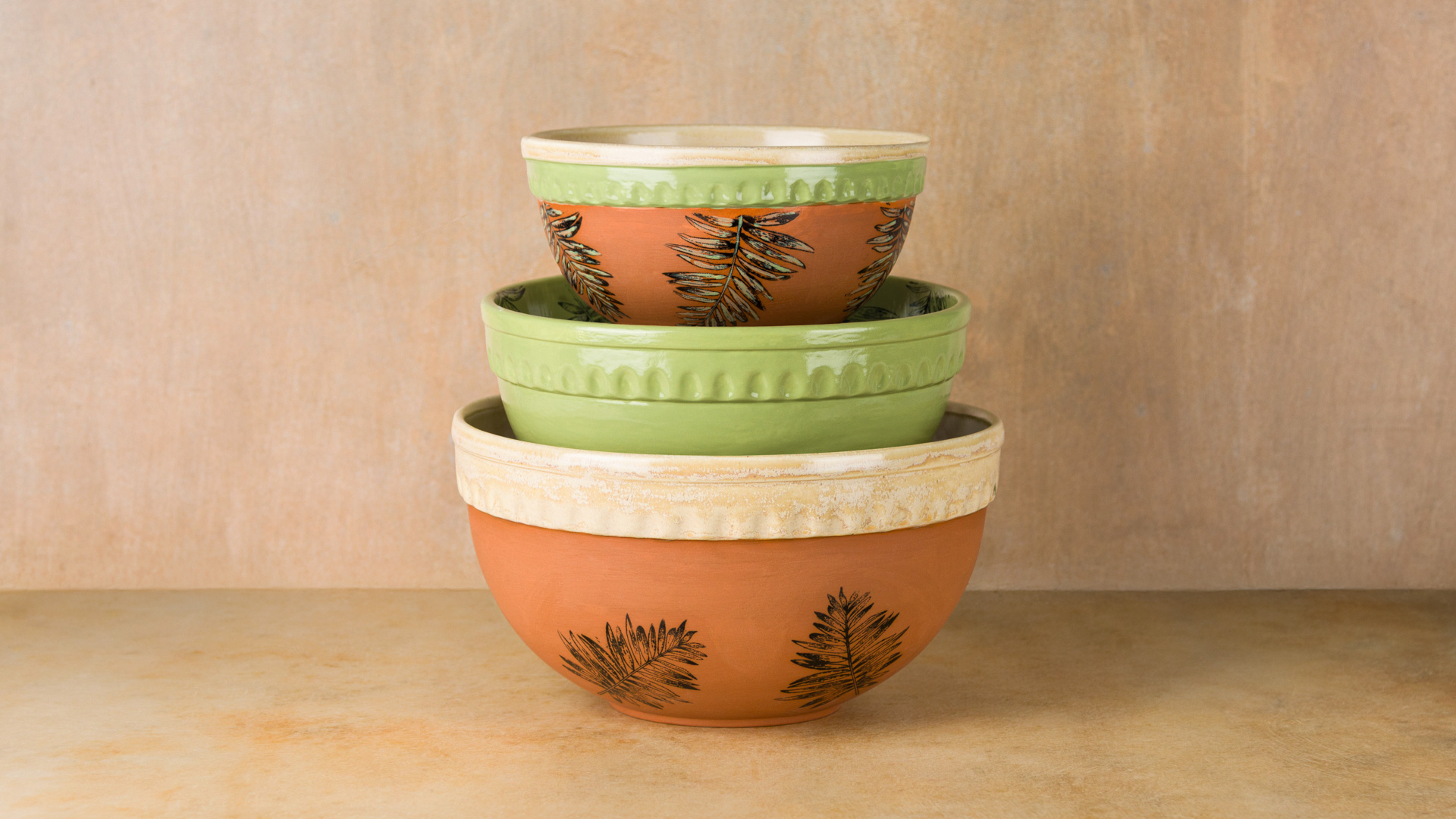 - With a #8 Soft Fan Brush apply 3 coats of EG007 Terracotta Engobe to the outside of the bowl, under the rim including the bottom of the bowl.