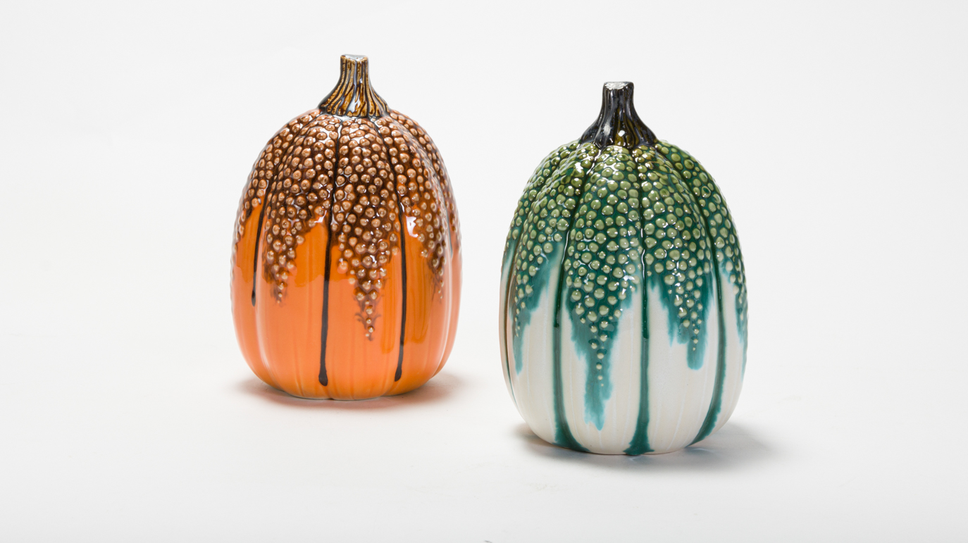- Using the Detail Liner, apply one coat of SW-304 Copper Wash to the stem and over the beaded texture on pumpkin.