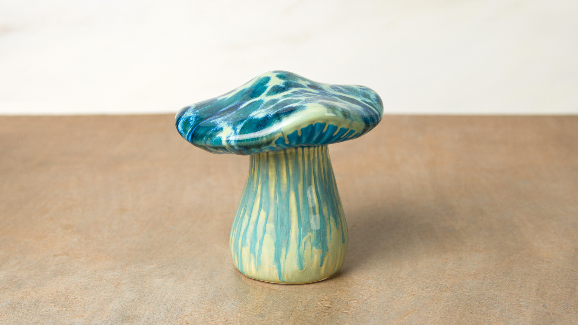 Apply a third coat of SW167 Sand and Sea to the top of the mushroom cap and sprinkle the crumbles onto the wet glaze.