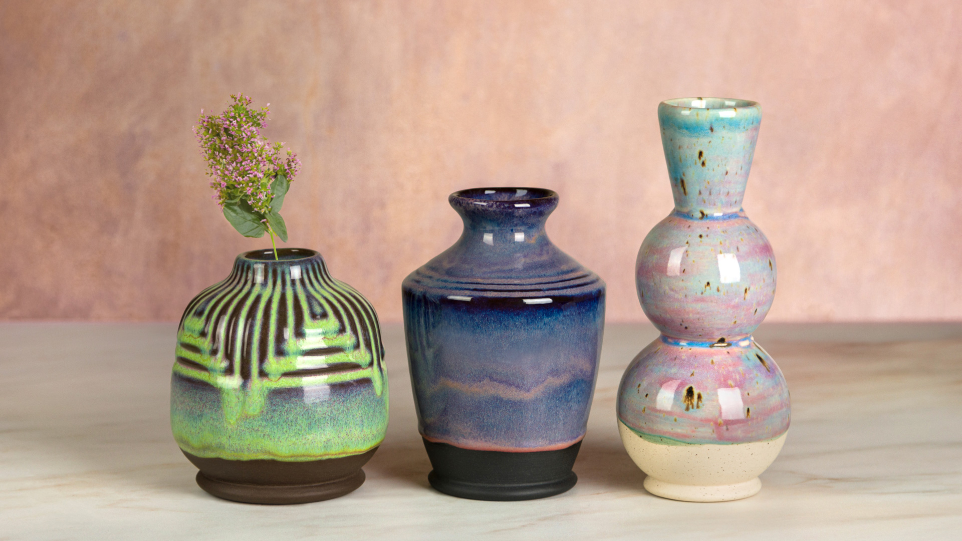 On a paper plate, marble together SC028 Blue Isle and SC029 Blue Grass. Add drops of SW167 Sand and Sea and marble into the Stroke and Coat with the back of a brush. Set aside the plate to dry. (Best if left overnight or in front of a fan)