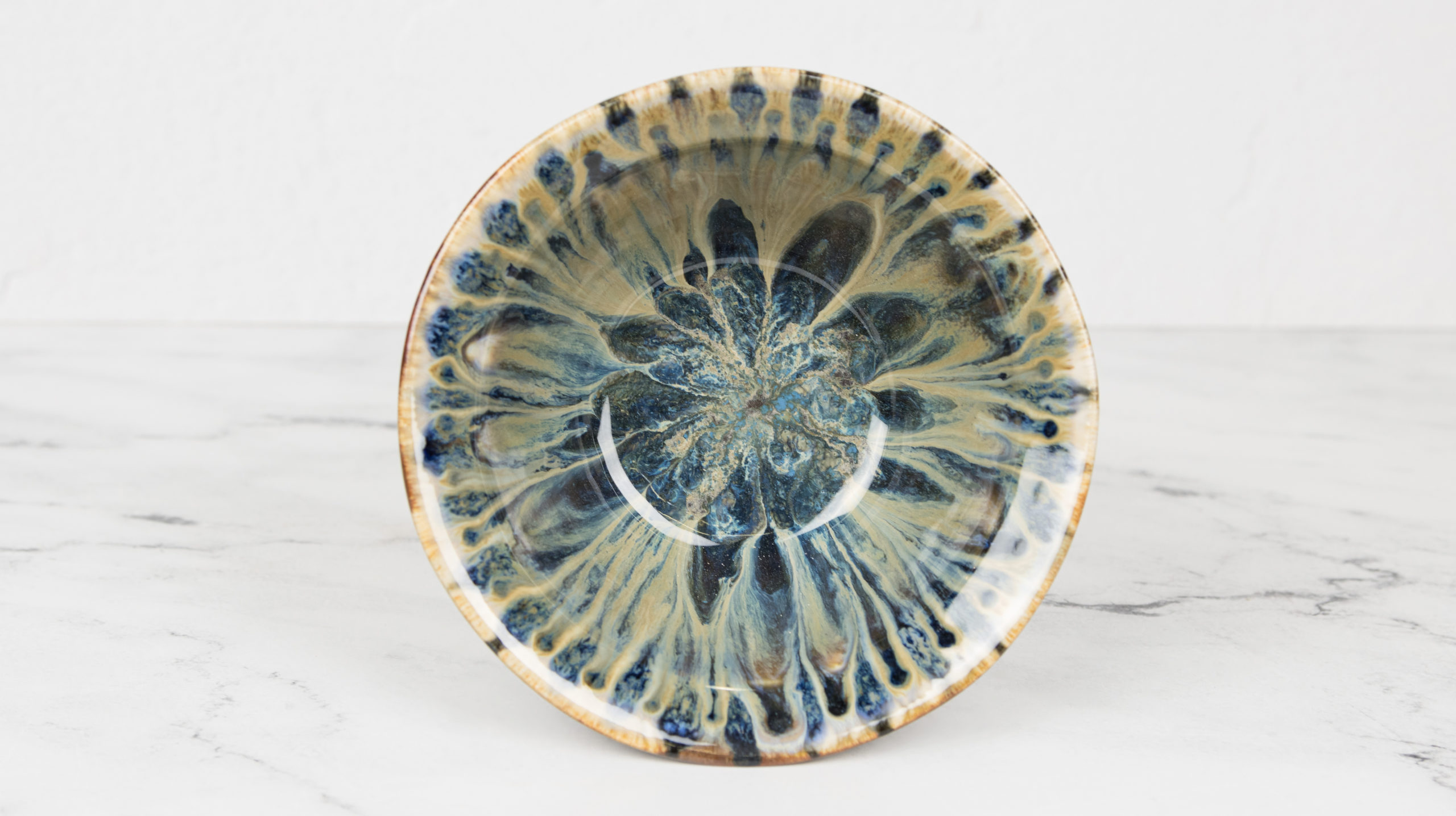 Using the CB-604 Soft Fan Brush, apply 3 coats ofSW-505 Purple Gloss to the back side and entire front of the plate. Do not glaze the bottom or the foot. Let dry well.