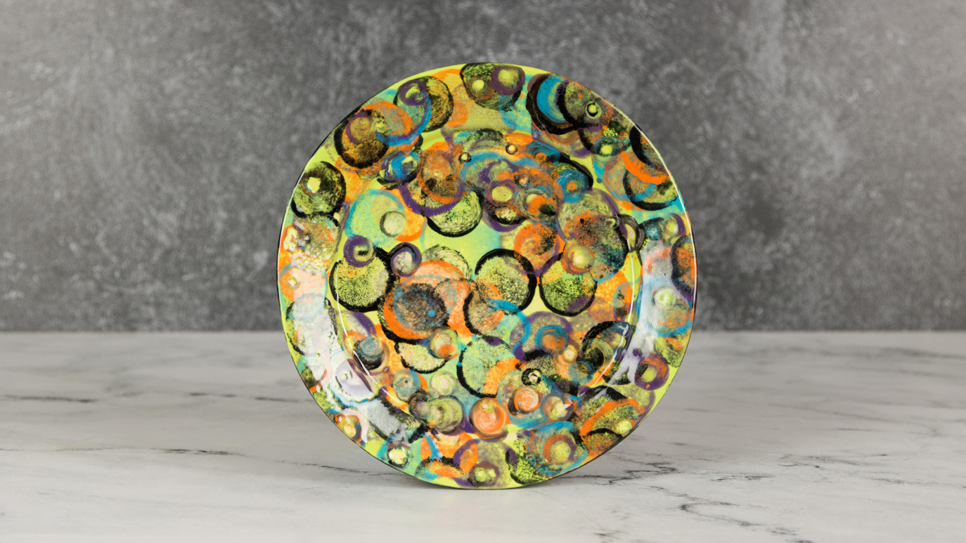 9. Use the Script Liner to apply the Green Tea, Birch, and Desert Dusk to the back of the Dessert Bowl in the same order.