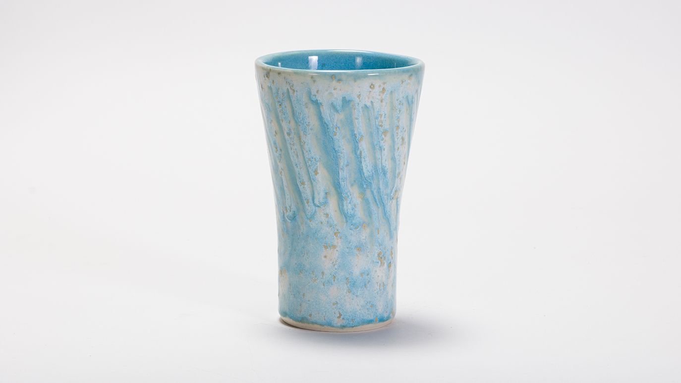 5. Brush on two heavy coats of Norse Blue (SW-166) over the entire outside of the cup. Let dry.
