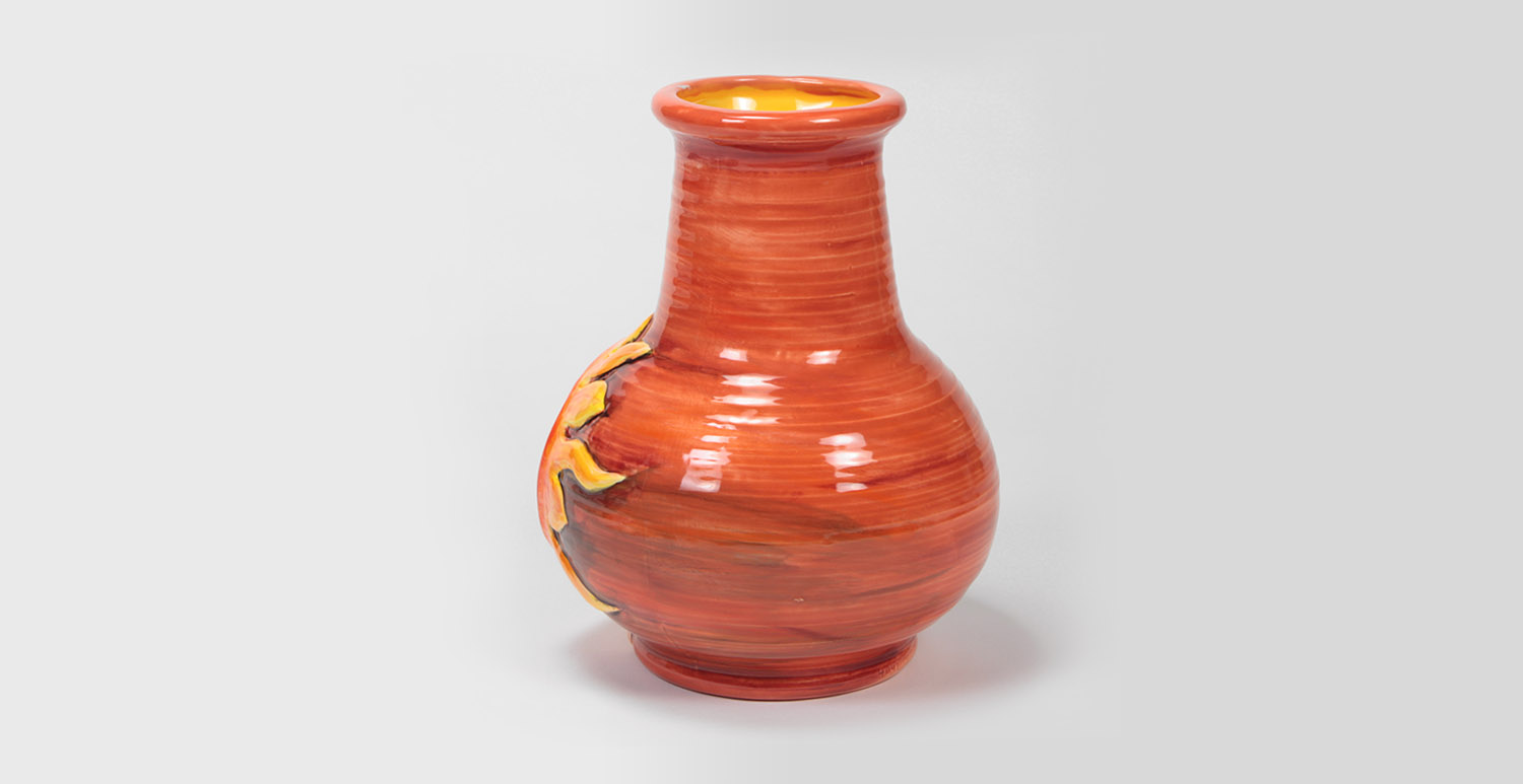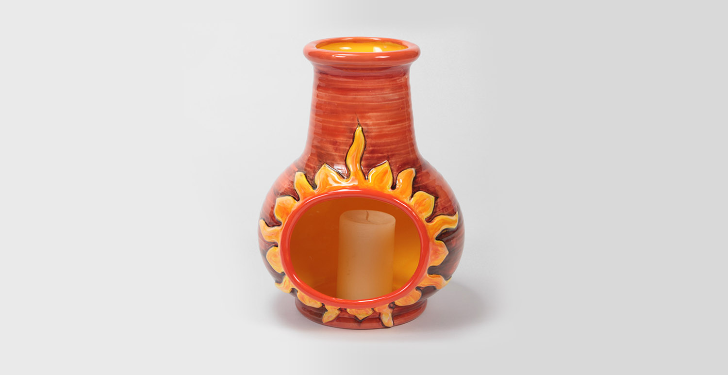 3. Thin with water in the CB-604 Soft Fan SC-80 Basketball, brush in a circular direction on the pot, avoiding the flames, two coats, brush in slightly thinned SC-81 Cinnamon Stix brush into the shadow areas around the flames and under the neck, use CB-106 Script Liner, use the line to brush in Cinnamon Stix to various rings in the pot to vary the color.