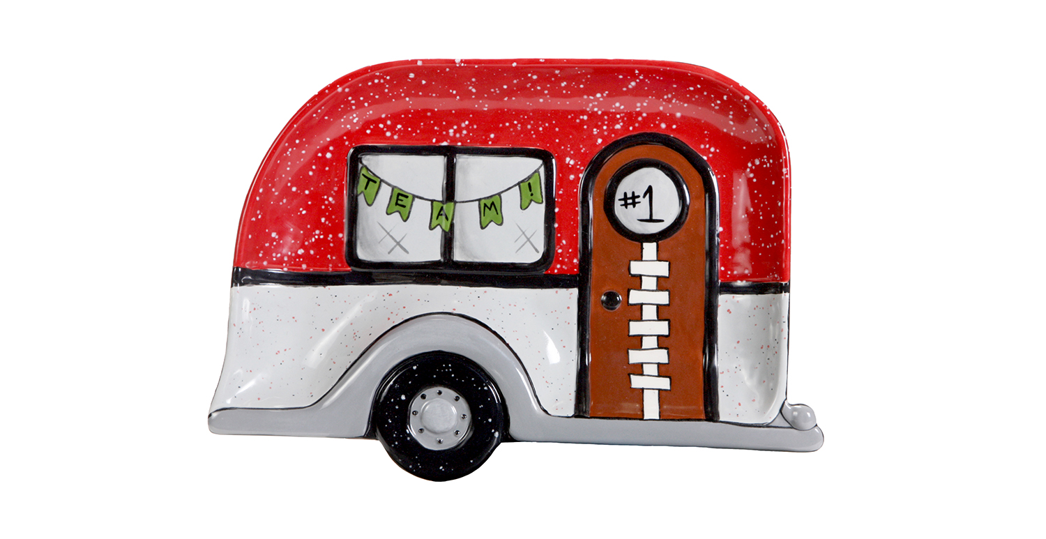 2. Using the Script Liner with SP-274 Speckled Hot Tamale, apply 3 coats to the top half of the camper. Allow glaze to dry between coats.