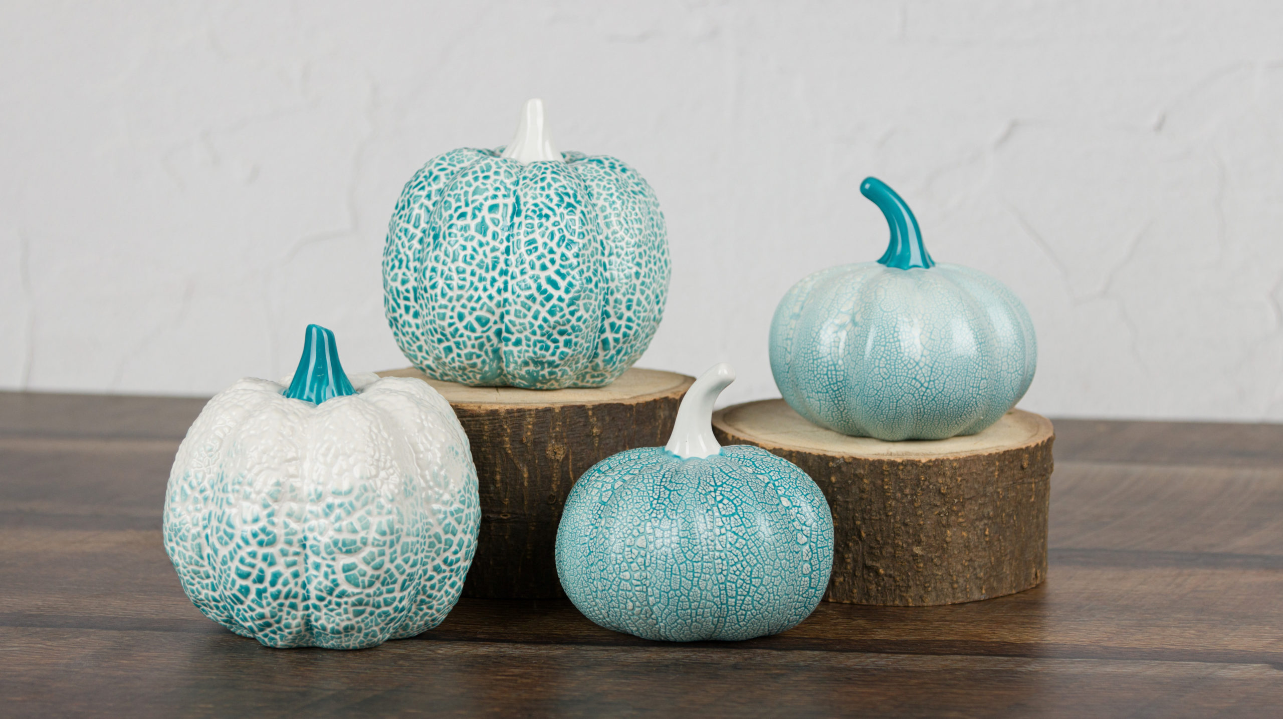Using the Soft Fan with FN-042 Teal Blue, apply 1 coat to the body of the pumpkin (not the stem). Do this after the final coat from step #3 loses its shine, but do not wait until it is dry enough to crack.