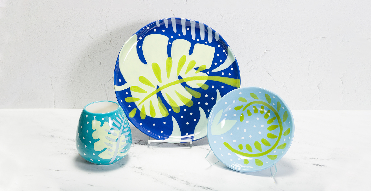 Paint your own design or pattern onto the tissue with one coat of your desired color(s). Be sure not to apply underglaze thickly as it will crack off piece when fired.