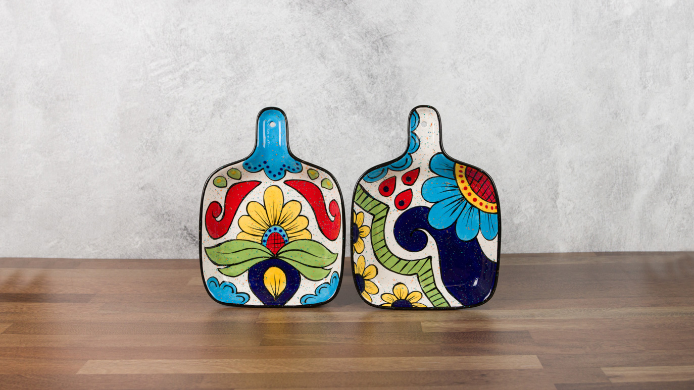 Once dry, option to add color to the designs by adding one coat of an underglaze color into or overtop of the designs.