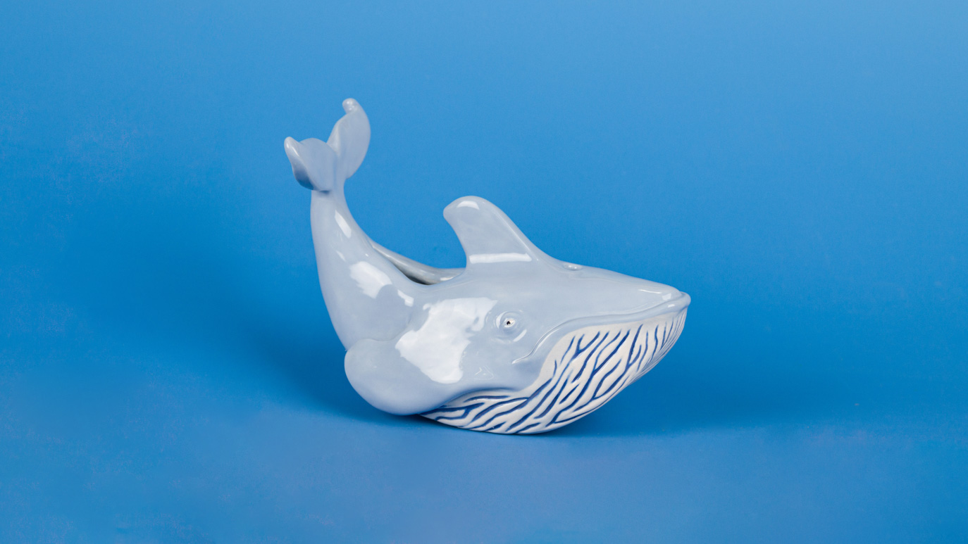 Using a fan brush, apply three coats of FN057 Periwinkle on the body of the whale.