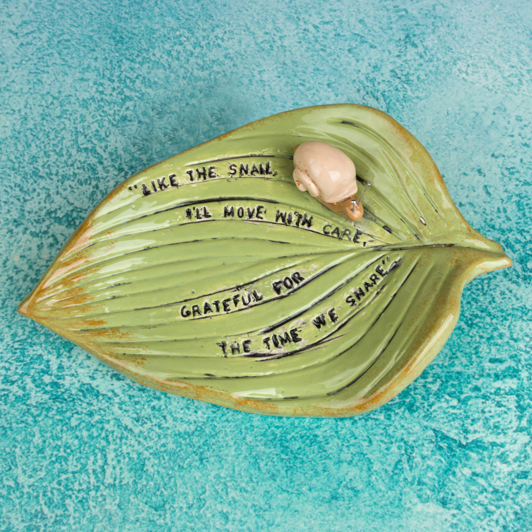 Students will press a leaf into clay and inscribe a word, mantra, expression of gratitude, or meaningful quote at its center.