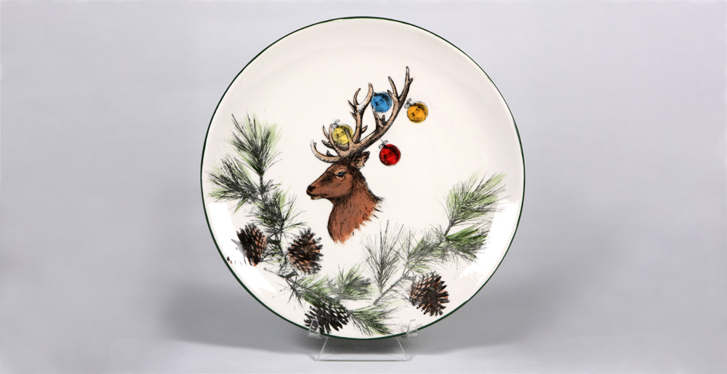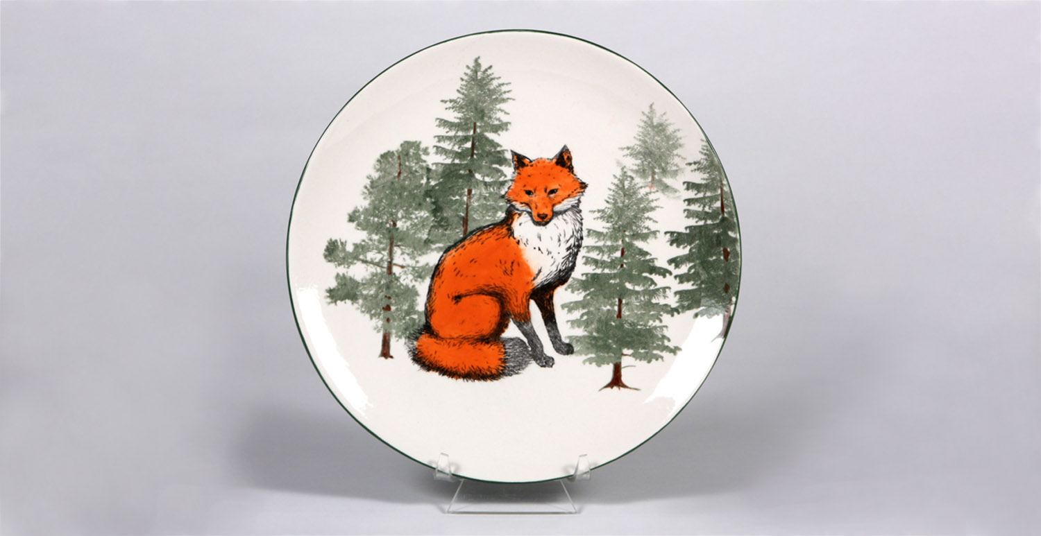 9. Mix SC-36 Irish Luck with the thickened SC-15 Tuxedo for a dark green, add more of the AC-310 Silkscreen if necessary, use the pine trees from DSS-0110 Botanical Trees to screen on the fox plate.
