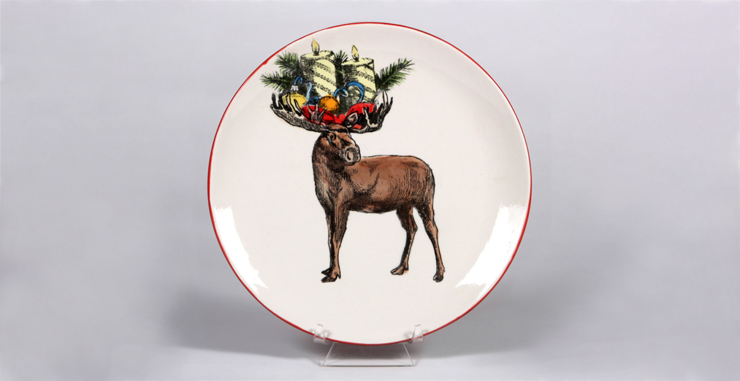 3. Use the animals from DSS-0101 WoodlandANimals, the moose, fox, rabbit and deer head, use the tinted clear to screen onto the plate, place the shiny side down, rub the thickened mix over the screen, gently clean.