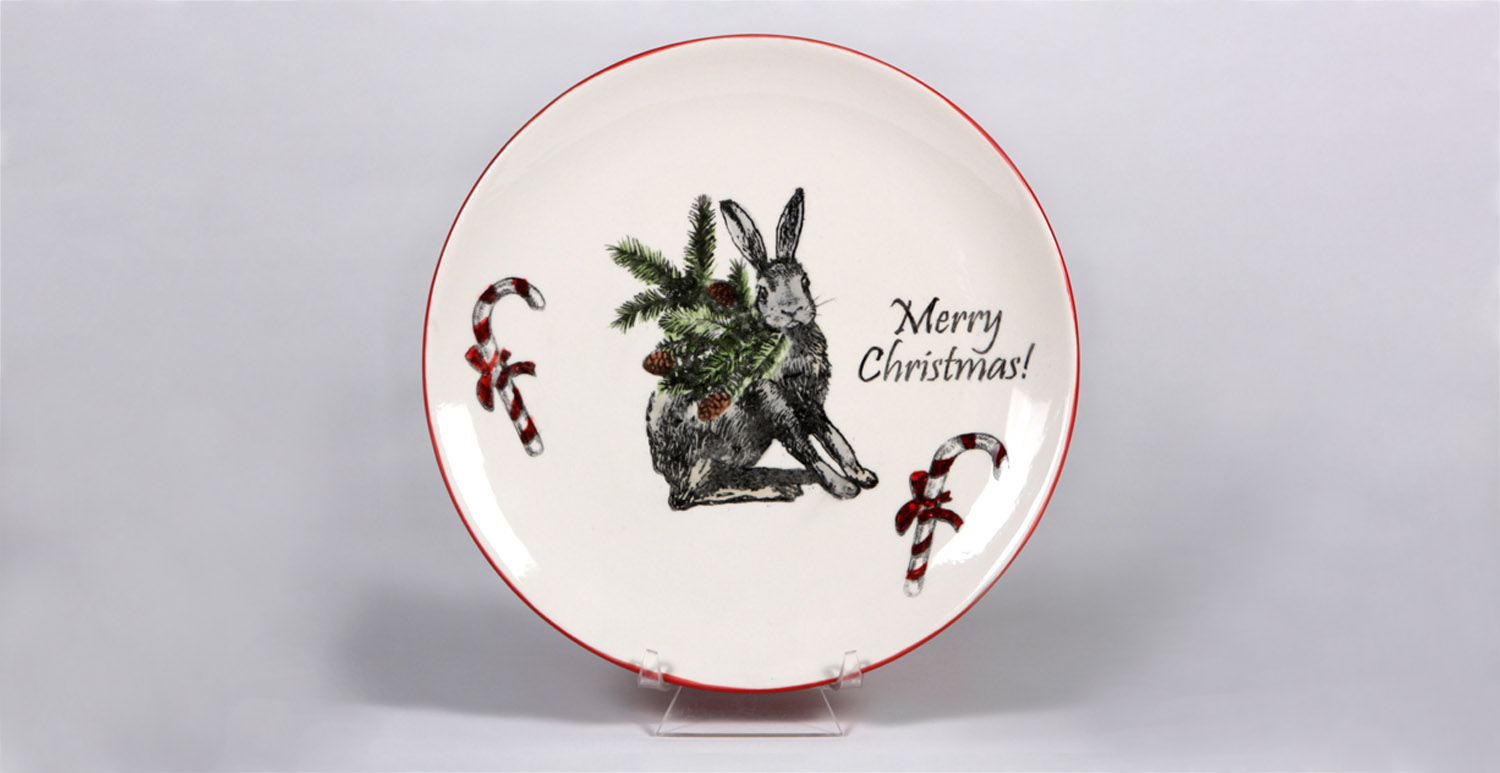 10. Brush on two coats of S-2101 Clear to the top of the plates with CB-604 Soft Fan, and brush on three coats of FN-004 Red to backs of two of the plates and three coats of FN-010 Tree Green to others.