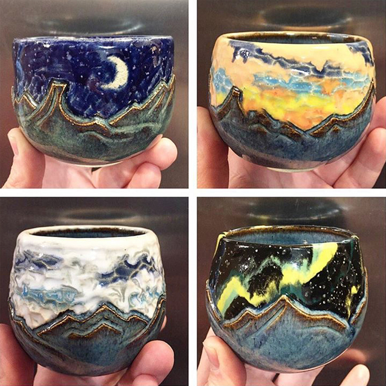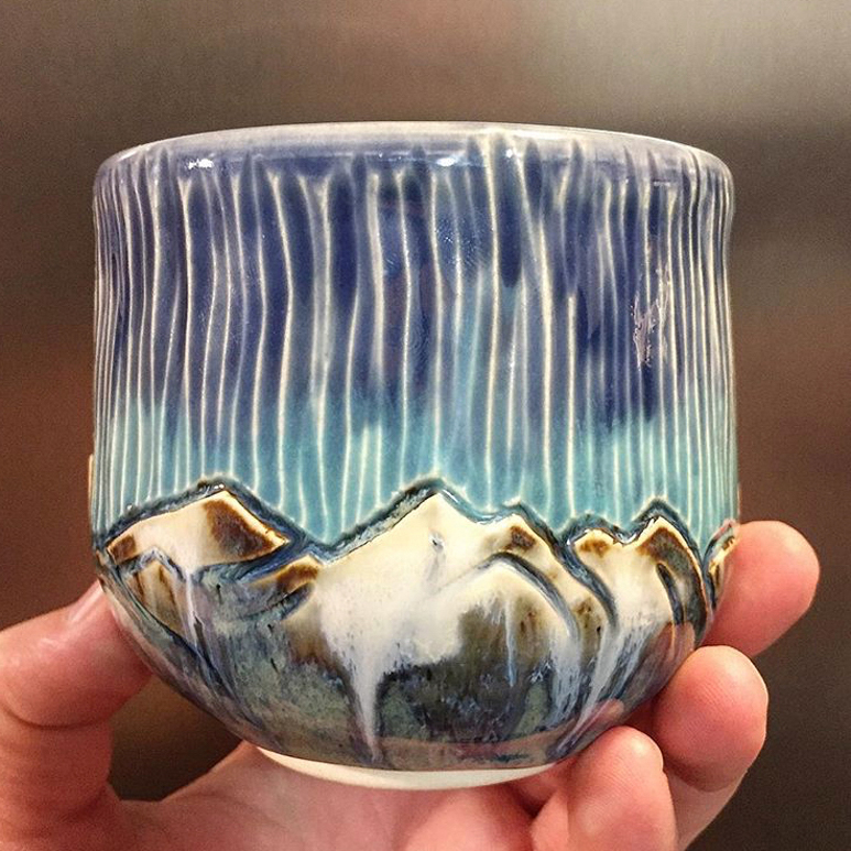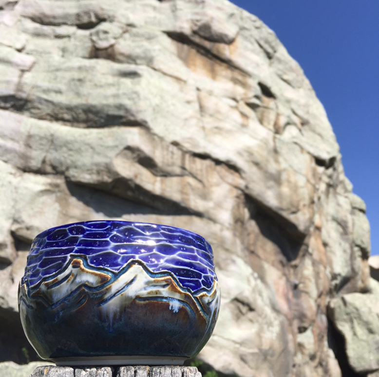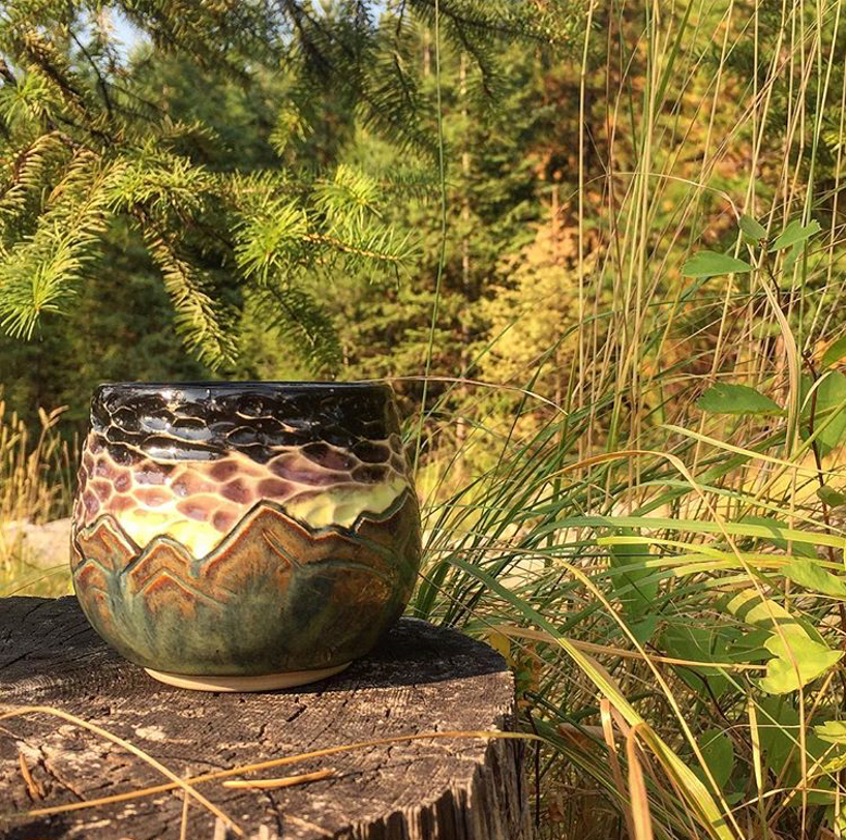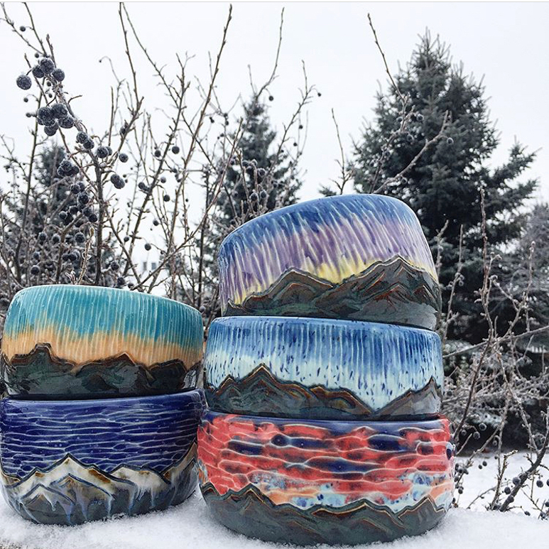 Sonja: I have mostly focused on landscape designs, drawing inspiration from the nature of my hometown in the mountains, and my adult home with beautiful views of both the mountains and prairies. I love engaging with art through all my senses, so I want to incorporate texture and bold color into my work. My work should be held and used, not just looked at.