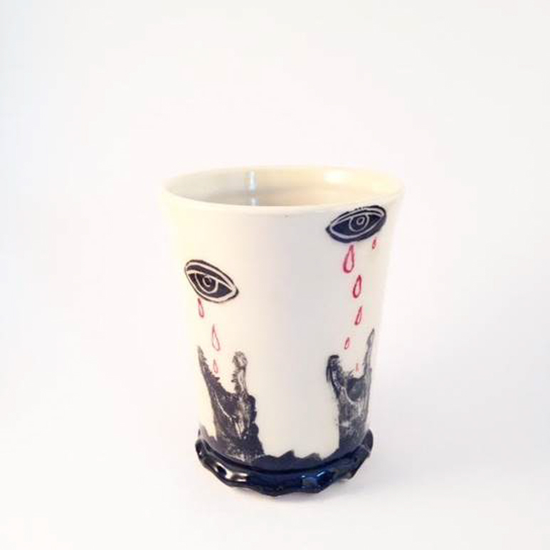 Taylor: I try to keep a common thread throughout most of my work. With the surface, I am always trying to evoke a balance of beauty and intrigue. Sometimes this is done by combining images and patterns to create a specific narrative. Other times a simple motif such as a flower or geometric shape. I am always working within a limited color pallet with tons of contrast. I like using bold images mixed with pattern such as stars and dots. My forms are mostly thrown and altered, however I have been doing more hand building work lately. Mostly I just like to have fun with my work! I think the joy I get out of making pots really comes through in all my pieces and I hope that would be a significant signature.