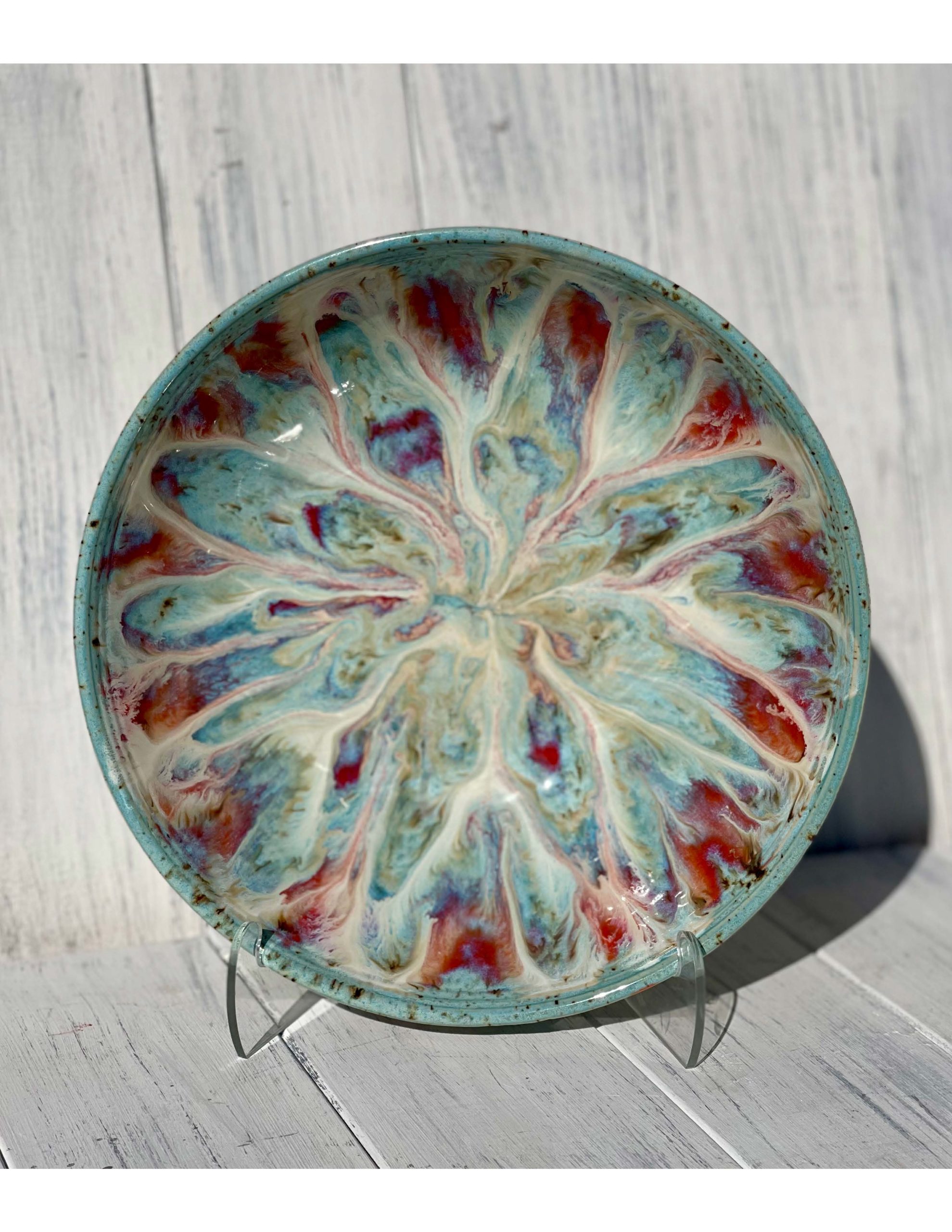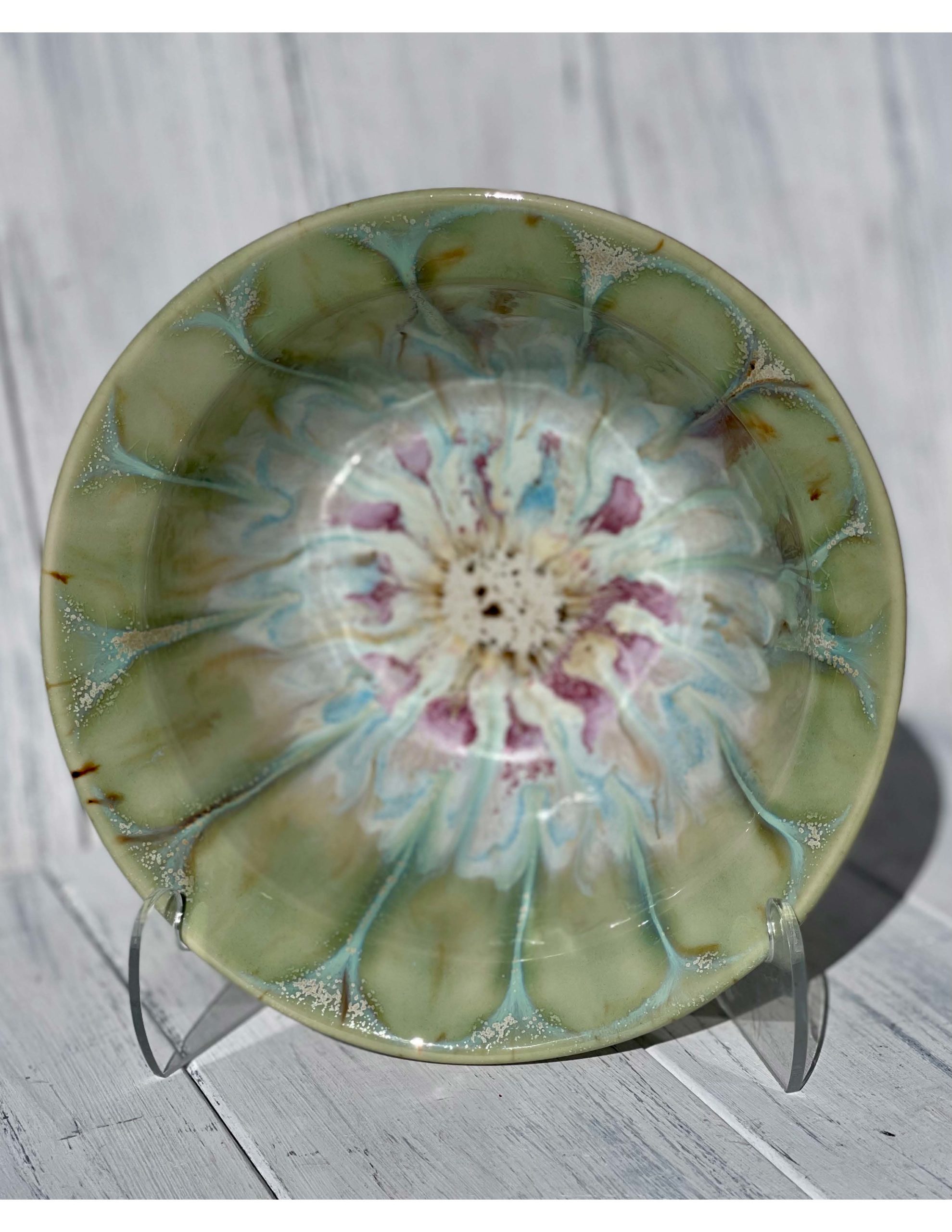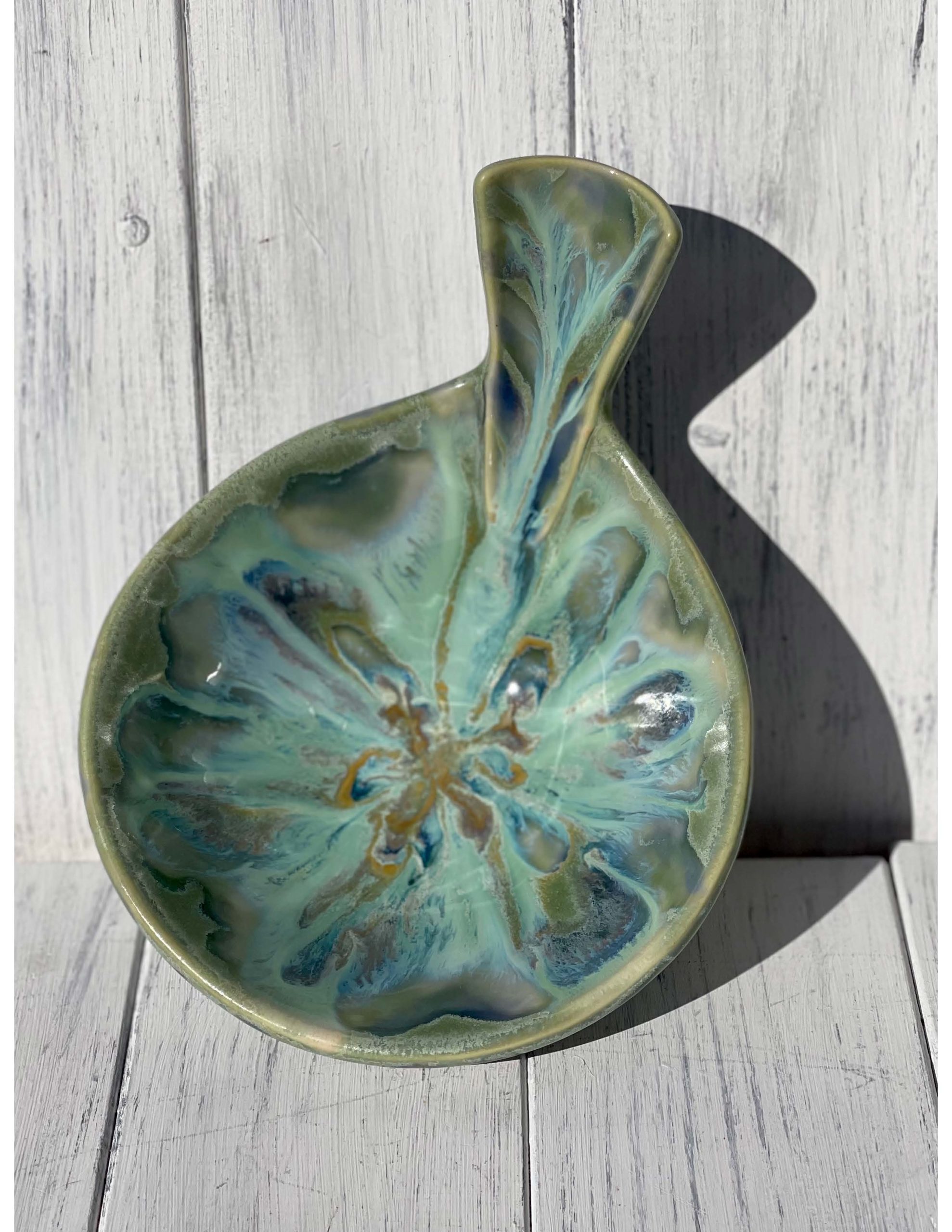 The pandemic played a pretty big role in my exploration with Stoneware. I had some in my studio that I had purchased previously but didn’t know how to sell it. It just sat there. I had to close my studio for almost 2 months, so I started experimenting a little at home and then decided to take the Mayco Virtual Stoneware Pottery Camp in September of 2020 to learn more and figure out how to sell it better in my studio. The project library on Mayco’s website has been very helpful with ideas as well as Mayco Mud Room Society on Facebook. Everyone is always so willing to share and you never know what’s going to inspire you. I was able to use this inspiration to make it my own. The beauty of Stoneware is that no two ever turn out the same. And I wanted to challenge myself to make flux more user friendly instead being discouraged to use in the PYOP setting. Getting comfortable in front of a camera is something I thought I’d NEVER do. The pandemic forced me to do this, and it’s been a blessing. It’s become a very important part of my business doing Facebook Lives and teaching online classes. People love to see their pottery come out of the kiln. This was something that was always done behind the scenes. Now these live broadcasts have become second nature for me, and I highly recommend getting over that fear and just doing it! Sharing my client’s projects and my own stoneware to different groups on Facebook and the feedback I received gave me the encouragement I needed to host my first online class.